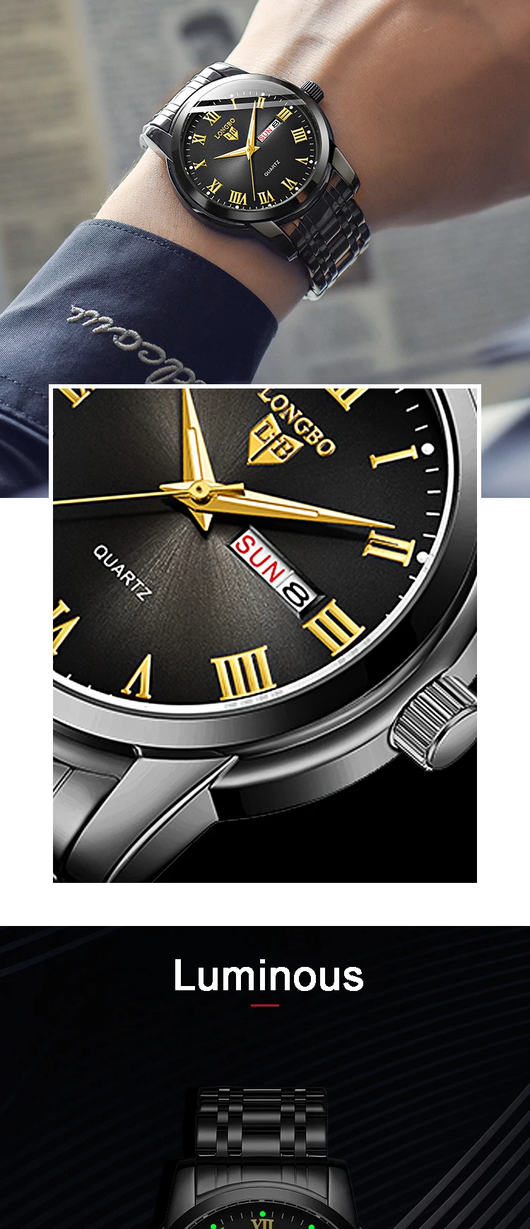 LONGBO роскошные часы для мужчин из нержавеющей стали Дата часы Мужские кварцевые наручные часы повседневные Relogio Masculino