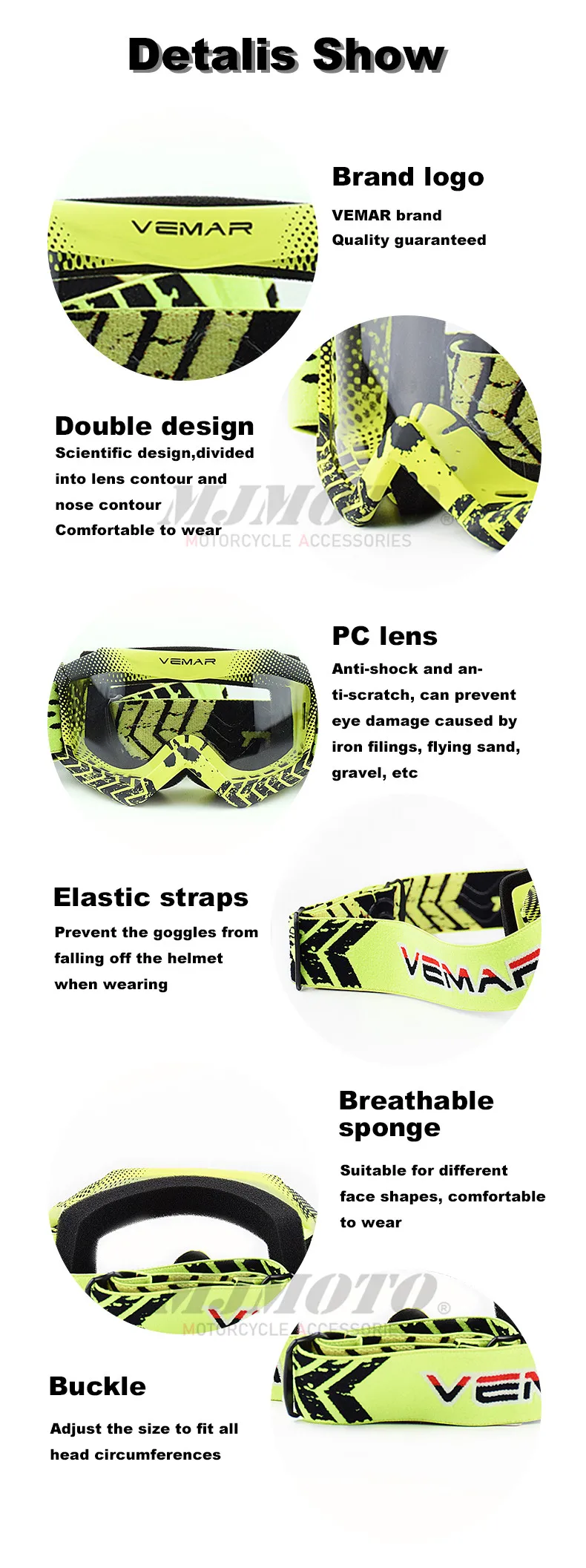 Мотоциклетные очки Vemar, ветрозащитные очки для мотокросса, детские лыжные очки, мотоциклетные очки MX для езды по бездорожью, детские очки