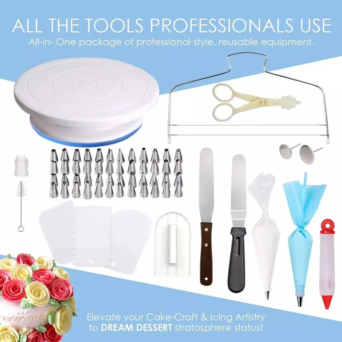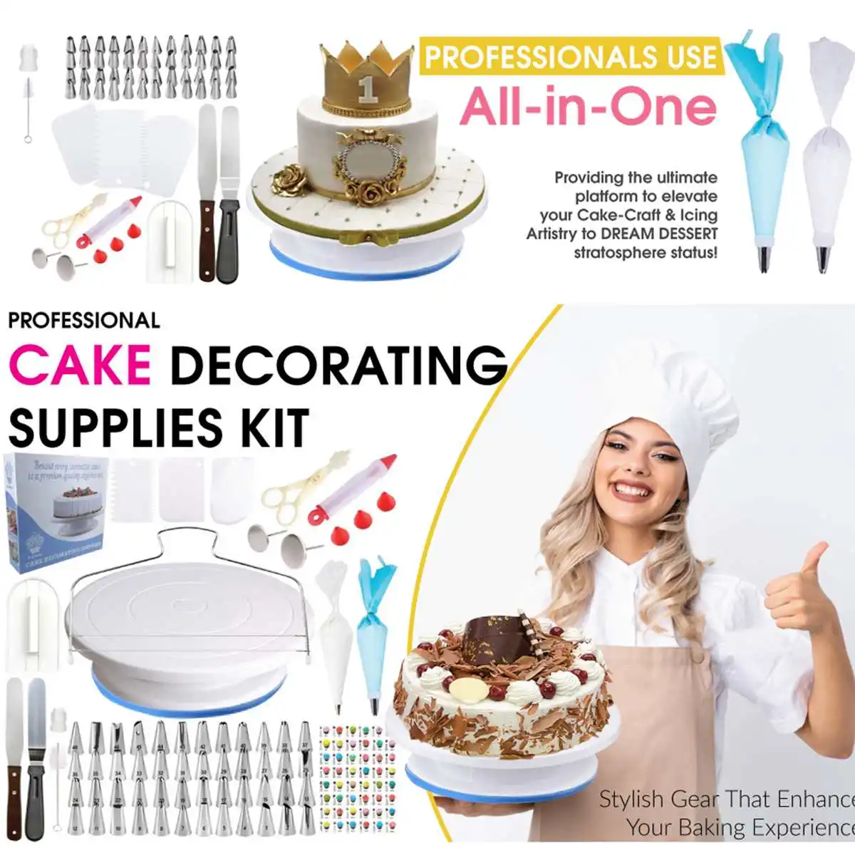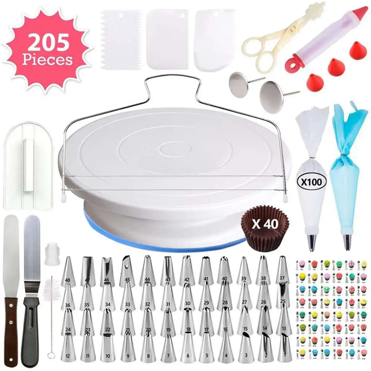 -Множество аксессуаров набор из 205 предметов состоит из почти всего, что вам нужно для украшения торта, например, 100 кондитерских пакетов, 48 насадок и так далее.
