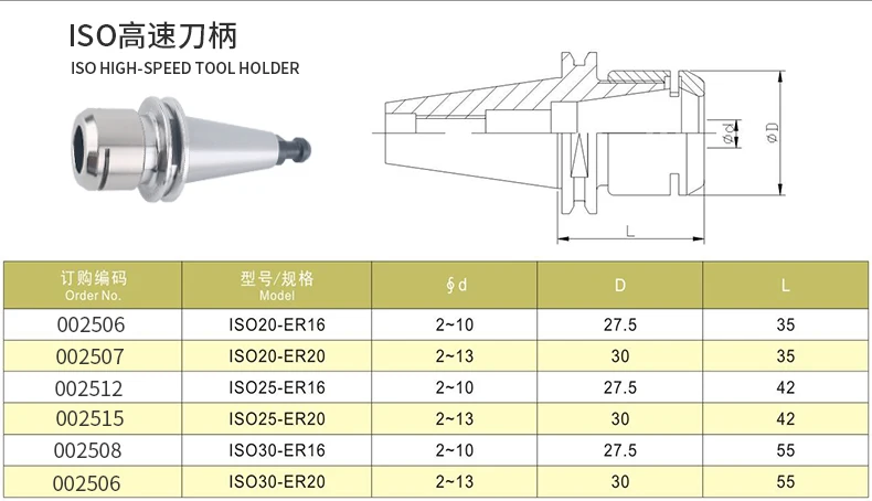 ISO20 ER16 ER20 ISO25 ER25 Toolholder Standard arbor : ISO 20 25 Proj: 35mm ER16 collet :1-10mm ER20 collet :1-16mm Balance : G20 40,000rpm Precision : 0.002mm Package included: 1pcs holder pull stud included
