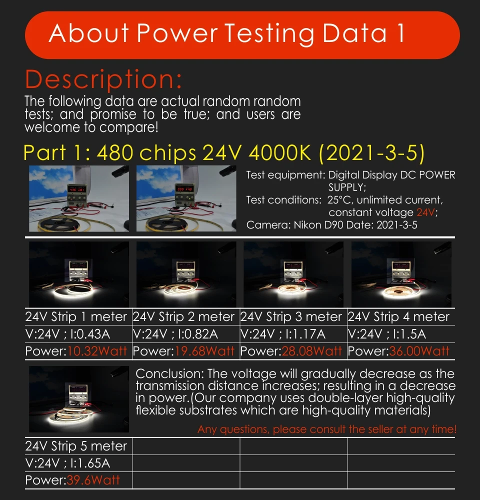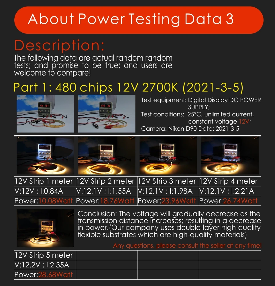 Из-за падения в процессе передачи напряжения, в изделиях светильник осветительной лентой будет явление потери мощности, пожалуйста, помните об этом!
