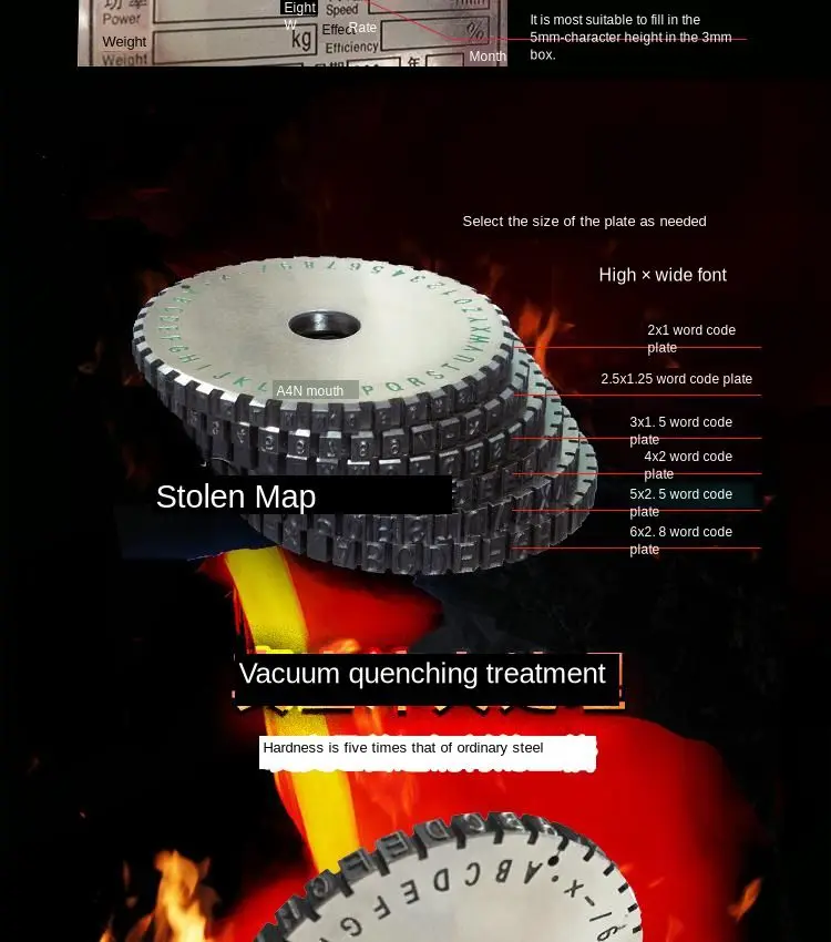 No. 2 character wheel - word height 2mm word width 1.1mm (suitable for signage front frame height 3~4mm)