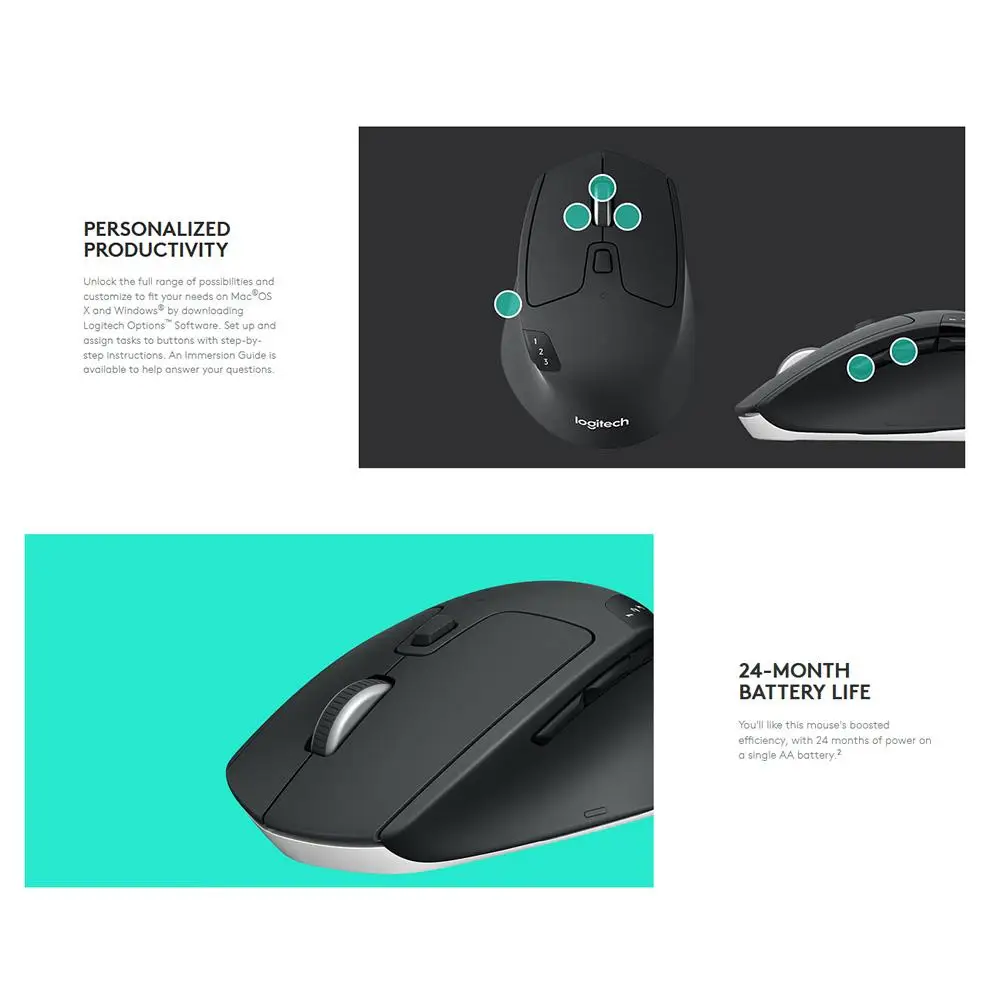 Повышенная эффективность означает, что мышь Bluetooth и Unifying Plus прослужит 24 месяца с одним аккумулятором AA.