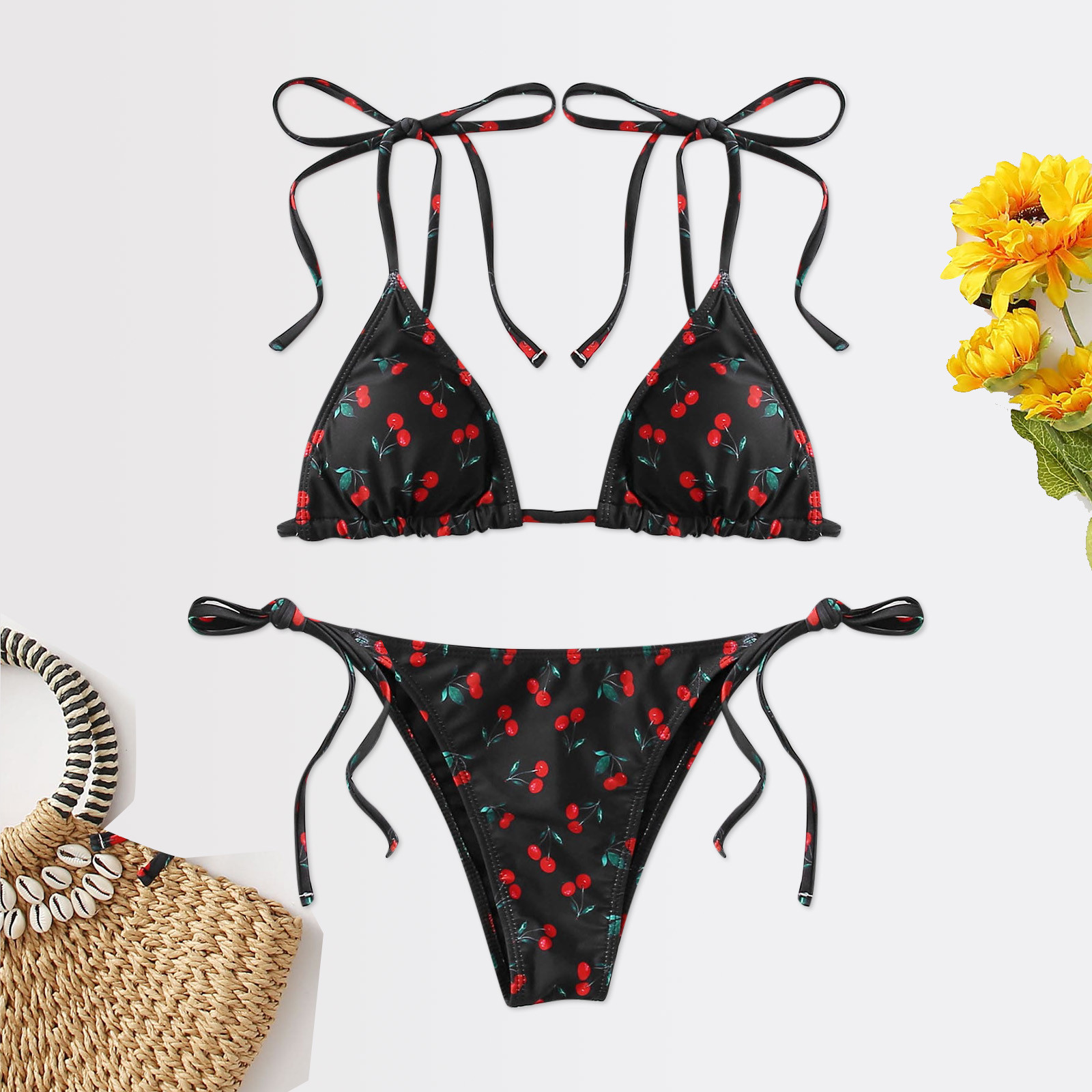 S-XL, сексуальный, игривый, маленький, вишневый купальник, женский, новый, модный, сексуальный, раздельный, с принтом, открытая спина, бикини, купальник sujetador Girl feel F4