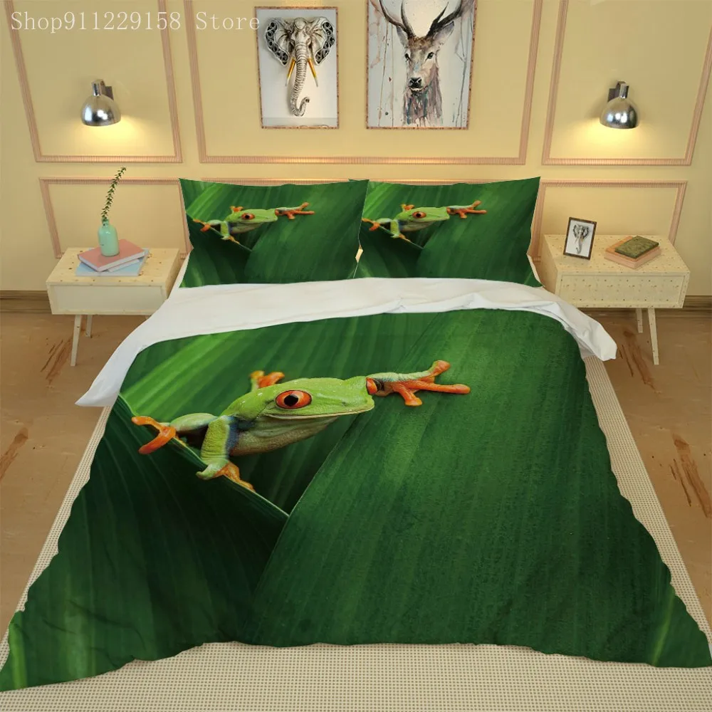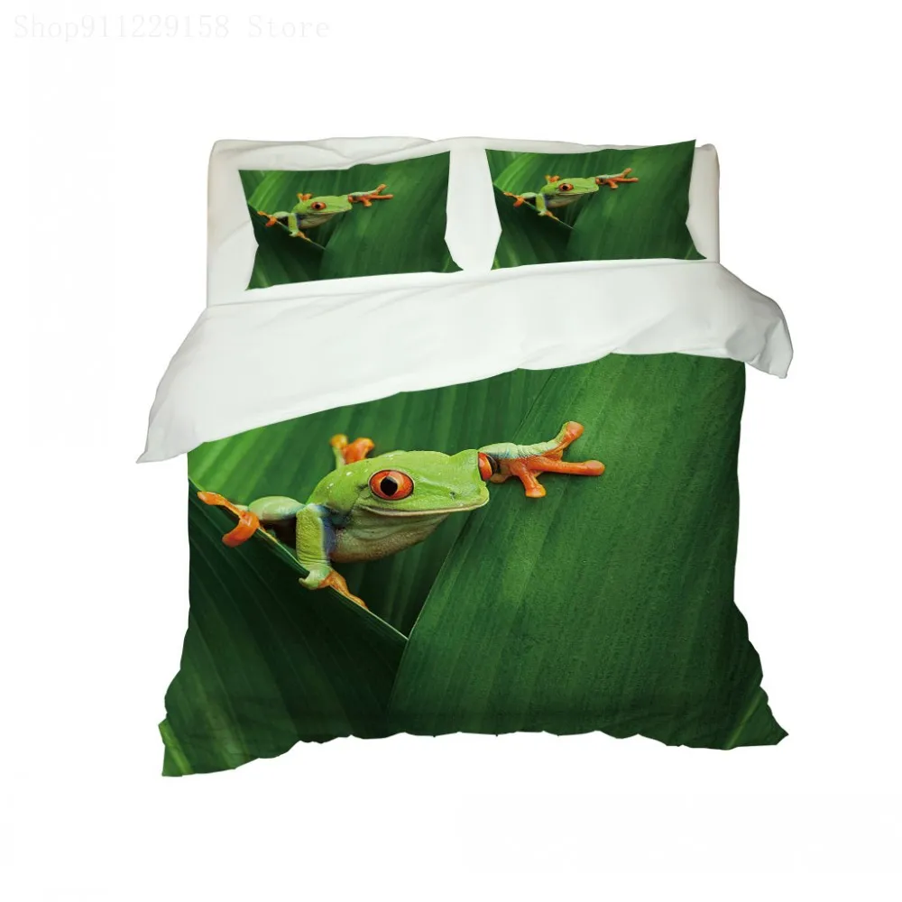 Смешной зеленый Лягушка Постельный набор животных пододеяльник набор для мальчиков пододеяльник с наволочкой домашний текстиль для подростков 3 шт