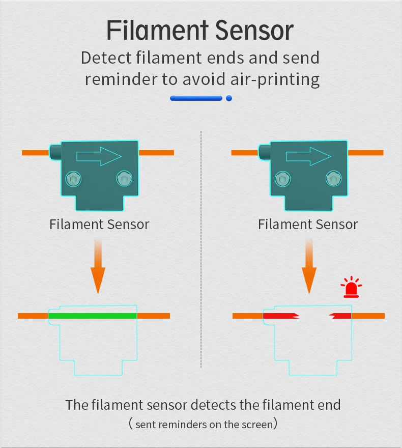 · Обнаружение нити, которая обнаруживает конец нити и посылает напоминание, чтобы избежать воздушной печати. (напоминает, как показано на ЖК-экране)