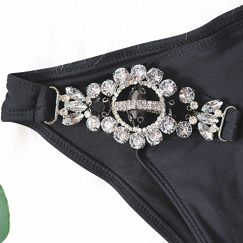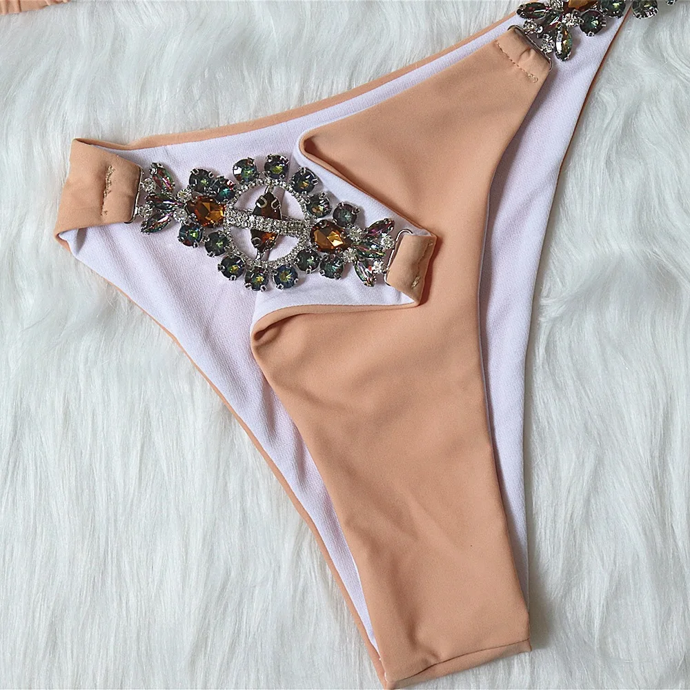 Телесного цвета с украшением в виде кристаллов наборы для ухода за кожей Женская летняя обувь Галстуки, верх на бретельках, костюм для плавания с рисунком треугольников из двух предметов топ с подкладкой с Стразы и со стразами; Сезон лето