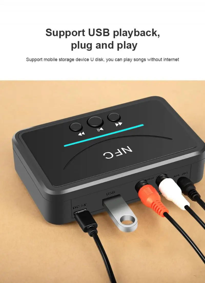 С USB, 3,5 мм и 2RCA вариантов подключения, вы можете наслаждаться музыкой с помощью беспроводного устройства на 2 динамика одновременно.