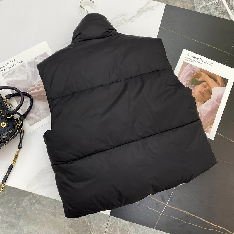 2021 зимний черный укороченный жилет, пальто для женщин, модные теплые парки без рукавов, жилет с высоким воротником, женская повседневная верхняя одежда, шикарный топ