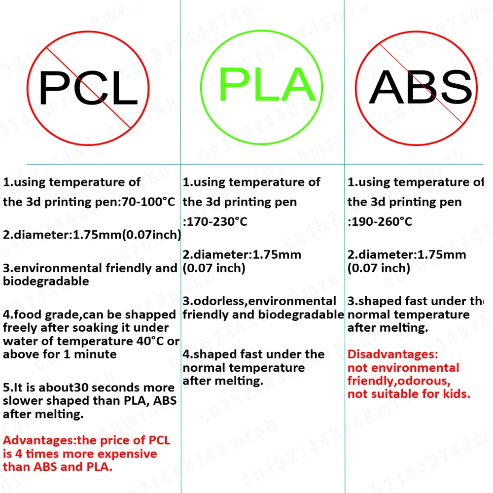 2, пожалуйста, проверьте детали для каждого выбора, когда вы размещаете заказ, Любая путаница перед заказом, пожалуйста, свяжитесь с нами в заказе.3, пожалуйста, убедитесь, что ваша 3D ручка имеет PLA режим и подходит для pla1.75 мм нити перед заказом!
