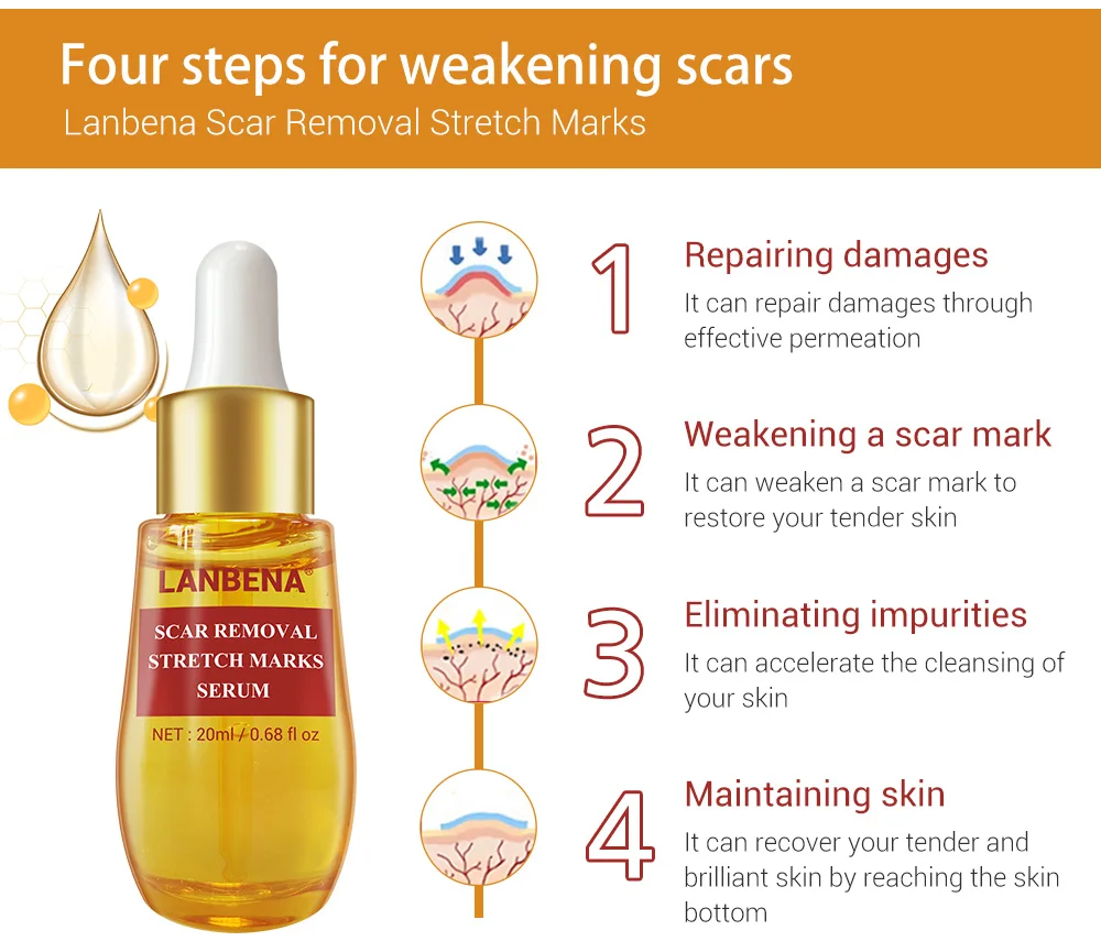 Эффекты: растительный экстракт разработан для разглаживания, смягчения и улучшения внешнего вида шрамов, связанных с травмами кожи, хирургией, ранами и ожогами. Выцветание рубцов меланина, удаление растяжек, ремонт pockmark.