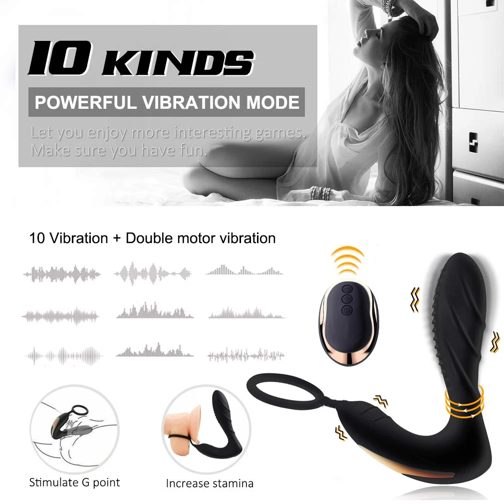 Массажер простаты для мужчин 3-в-1: анальный секс игрушечные медведи, все функции массажера простаты, вибратора и Кольца для пениса. Двойной мотор дает вам мощный и стимулирующий сексуальный опыт. Расстояние дистанционного управления составляет 15-25 м, что сделает вашу сексуальную жизнь веселее. Менее 50 дБ при работе P-Spot sex toy.