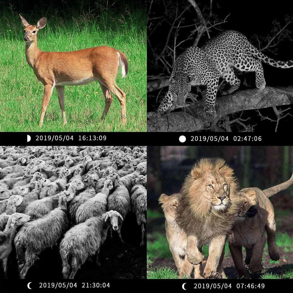 Описание (1) Видео Full HD 1080P, обеспечивая более высокое качество деталей в дневное время (черный и белый в ночное время). (2) камера trail оснащена диапазоном обнаружения 120 °, что позволяет получить превосходный широкий обзор. (3) камера наблюдения обнаруживает движения диких животных, как только они войдут в диапазон обнаружения. (5) при обнаружении движений охотничья камера мгновенно срабатывает. Расстояние срабатывания до 20 м (65 футов).