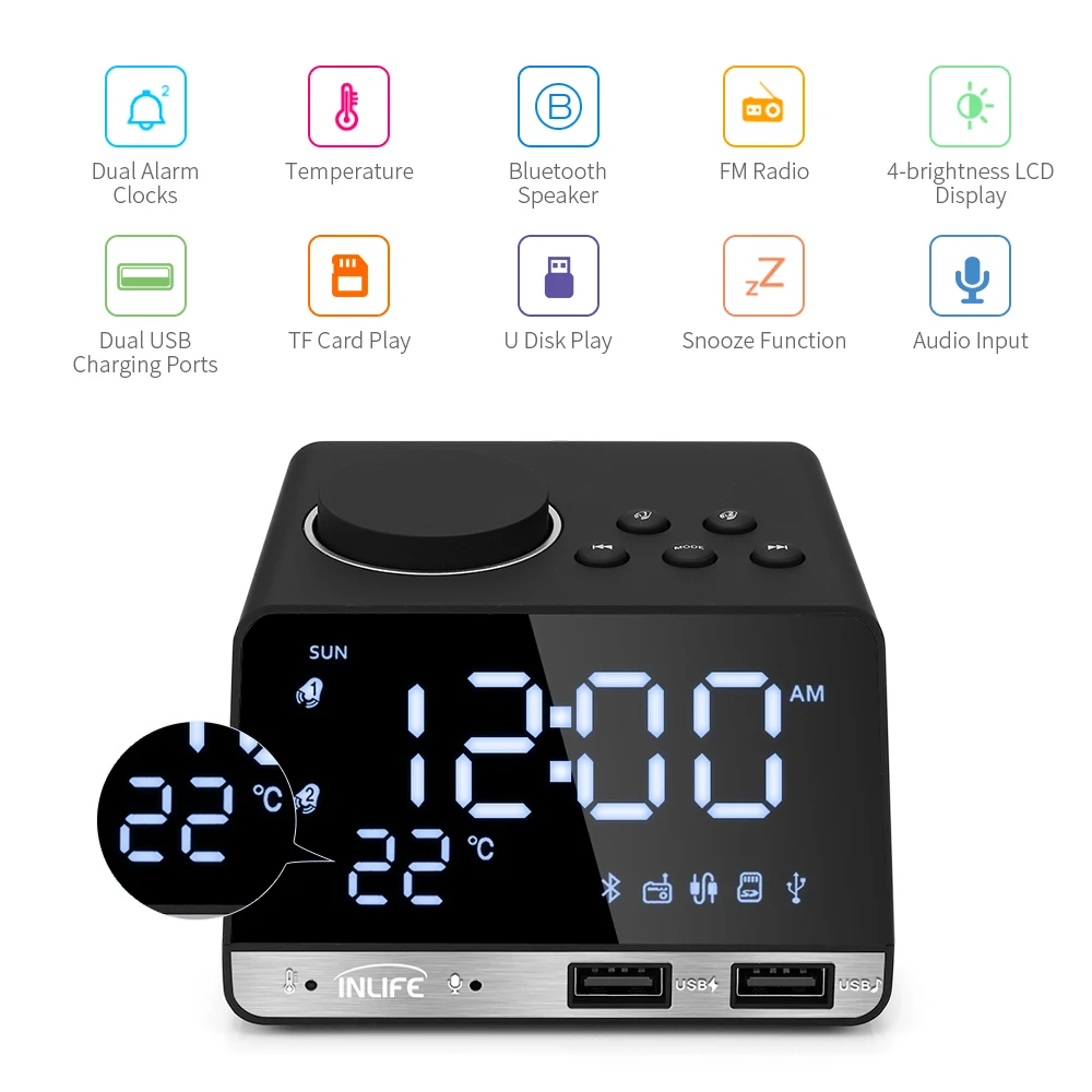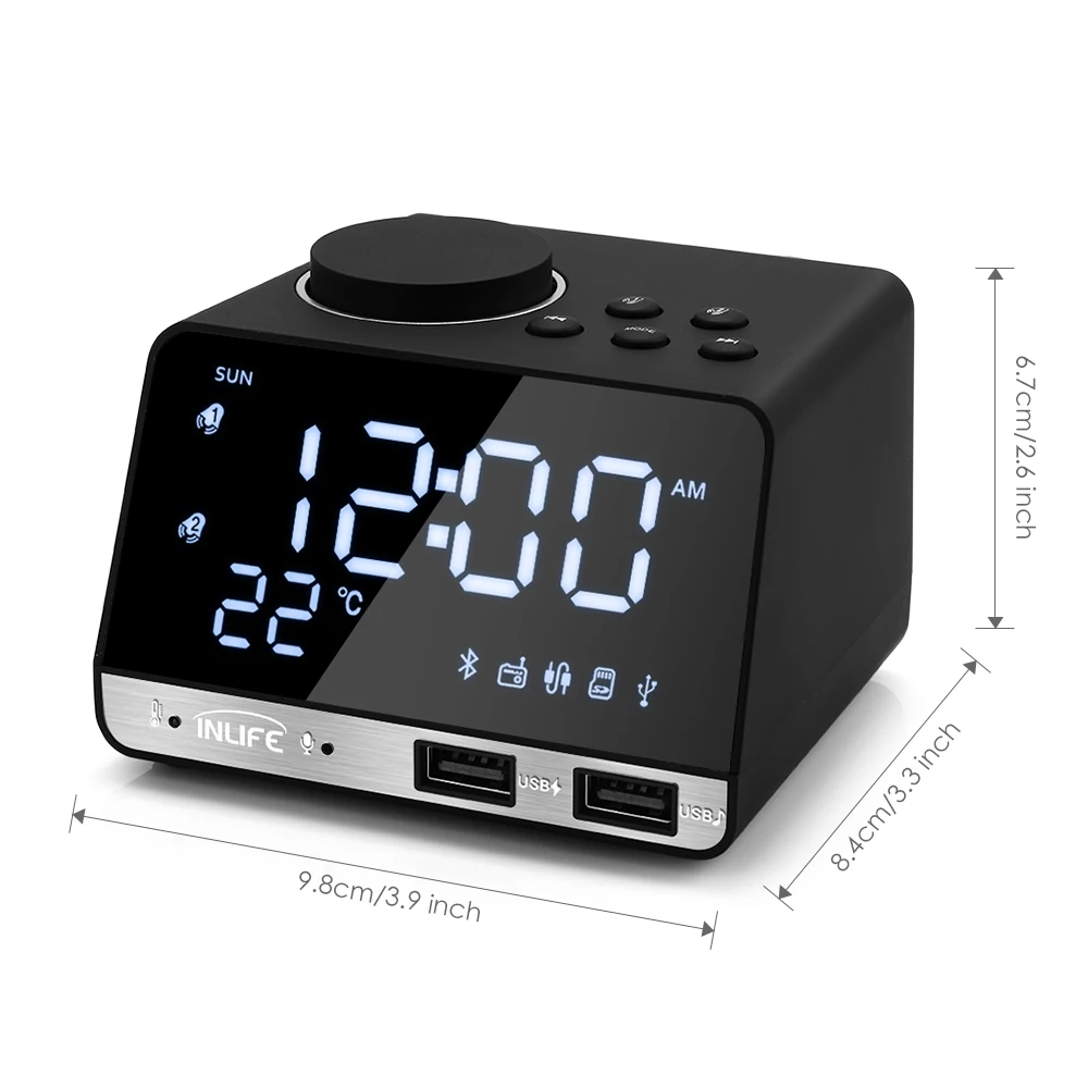 Общий Вес и размеры Вес изделия 0,1840 кг Вес посылка 0,3370 кг Размер посылка (Д х Ш х В) 14,50x10,20x9,00 см/5,71x4,02x3,54 дюйма Посылка ходит 1 динамик с будильником, 1 адаптер, 1 аудиокабель, 1 двуязычное руководство пользователя на английском и китайском языках