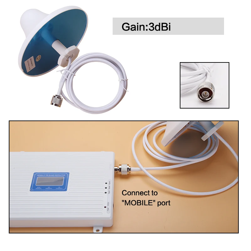 Всенаправленная антенна с коэффициентом усиления 3 dBi с кабелем 2 метра. Используйте его для подключения к порту «Mobile» усилителя. Всенаправленная антенна может передавать сигналы в 360 градусов.
