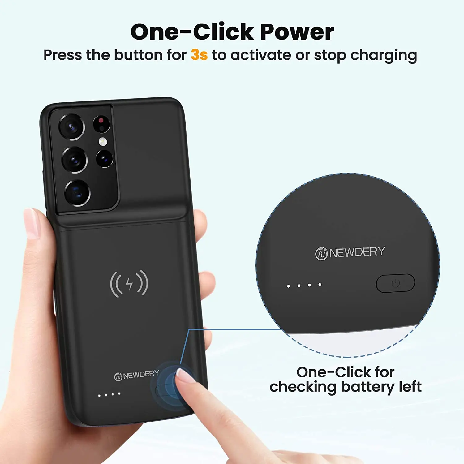Чехол для аккумулятора NEWDERY Galaxy S21 Ultra, чехол для беспроводной зарядки Qi с внешним аккумулятором 4700 мА · ч для Samsung S21 Ultra