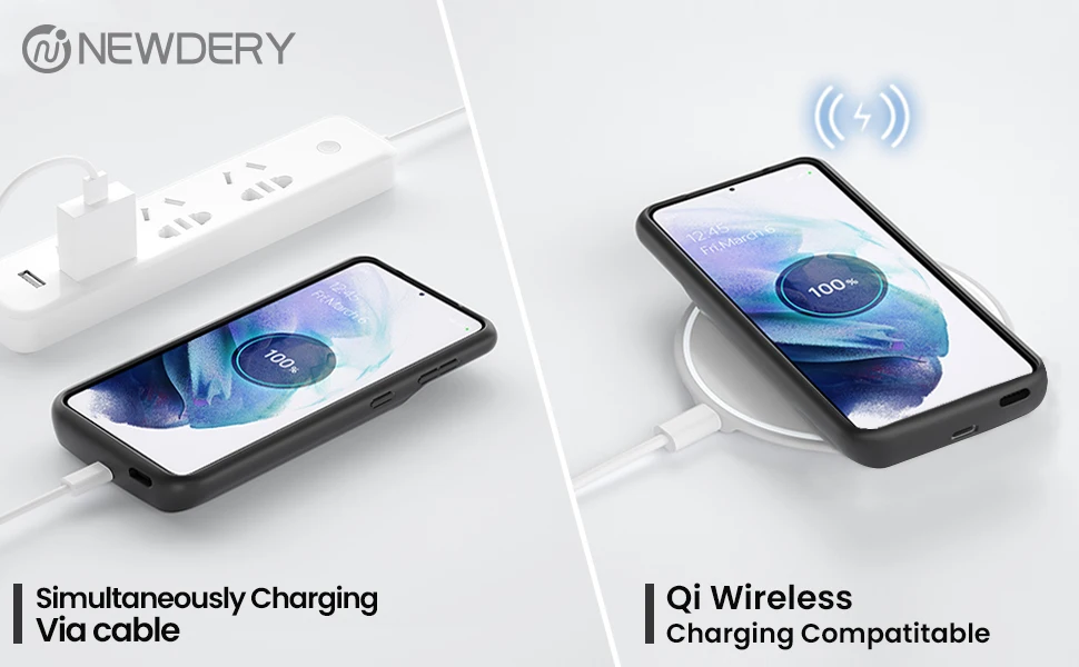Примечание: не поддерживает проводные наушники Type-C, NFC (Samsung Pay), Android Auto и Quick Charge. Работает только с сотовым телефоном S21 U;tra 5G. [Усовершенствованная Емкость беспроводной зарядки QI]: чехол для аккумулятора NEWDERY S21 Ultra 5G поддерживает удобную беспроводную зарядку. Аккумулятор корпуса и s21 ultra можно заряжать через беспроводную площадку Qi одновременно. Чехол для портативного зарядного устройства предназначен только для Samsung Galaxy S21 Ultra (6,8 дюйма), не для S21, S21 Plus или других моделей телефонов. [Долговечный дополнительный ресурс батареи 150%] Встроенный перезаряжаемый литий-полимерный аккумулятор емкостью 4700 мА · ч, обеспечивает дополнительный срок службы батареи вашего телефона 150%. Попрощайтесь с беспокойством при низком заряде батареи и неловкими моментами. Идеально подходит для путешествий, кемпинга, деловой поездки или других мероприятий на открытом воздухе. [Безопасный и красивый дизайн] Тонкий s21 ультра зарядный чехол с усовершенствованной приподнятой рамкой дизайн, Защита камеры и высокое качество объединительной платы может защитить ваш телефон от ежедневных царапин, износа. Встроенные смарт-чипы для защиты вашего смартфона от перегрева, короткого замыкания, перезарядки и разрядки. Сертифицированы CE, FC и Rohs. Это портативное изделие, которое можно переносить в самолете. [Тонкий и простой в использовании] чехол для зарядного устройства s21 ultra отличается небольшим весом и удобным захватом. Согните мягкую резиновую часть, проведите телефон в порт зарядки сверху вниз, затем слегка нажмите на телефон после того, как порт зарядки был вставлен, наконец Нажмите кнопку питания в течение 3s, чтобы включить, после того, как индикатор начнет заряжаться. Независимо от того, когда и где, вы можете наслаждаться умной жизнью с NEWDERY extended battery case.