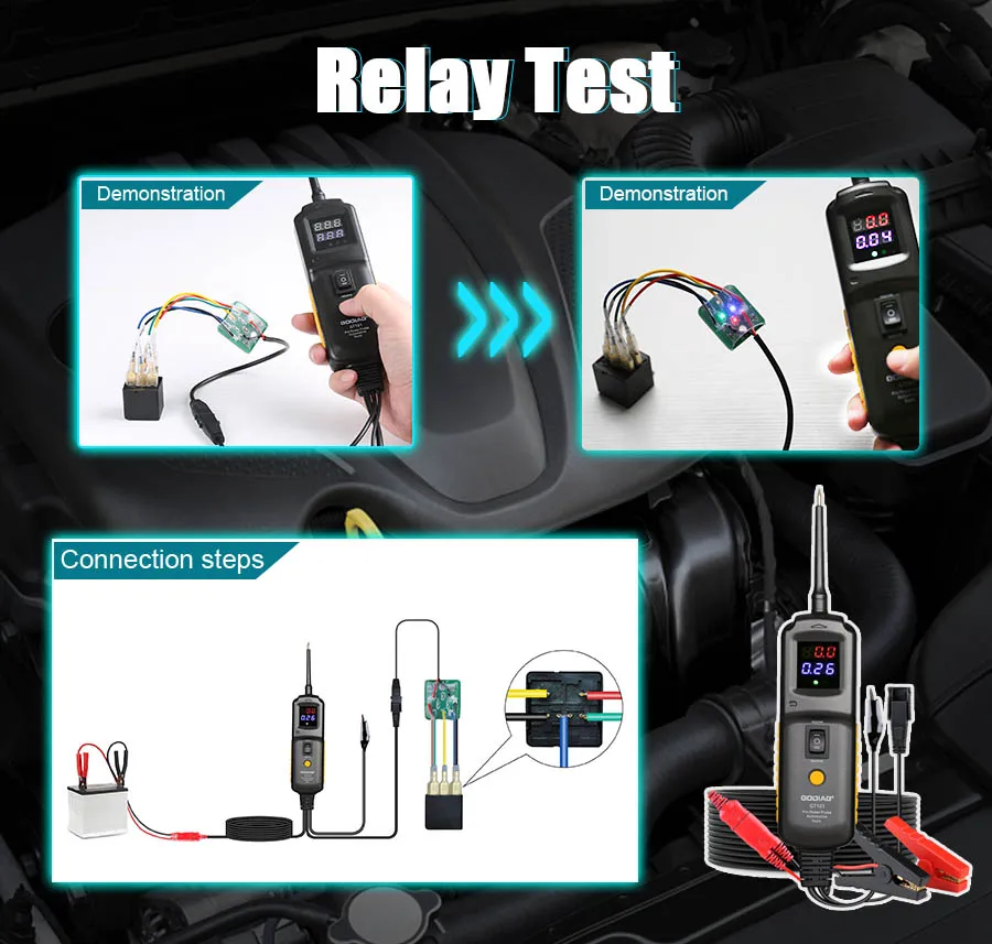 ①GODIAG PIRT Power Probe-это специальный инструмент для тестирования обслуживания цепи, который разработан для работников и инженеров по обслуживанию автомобилей.