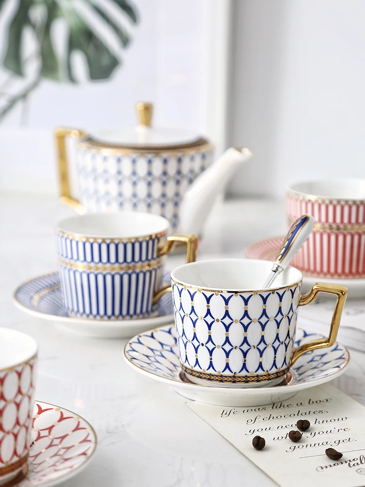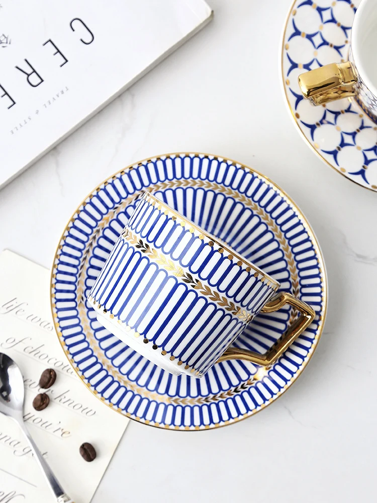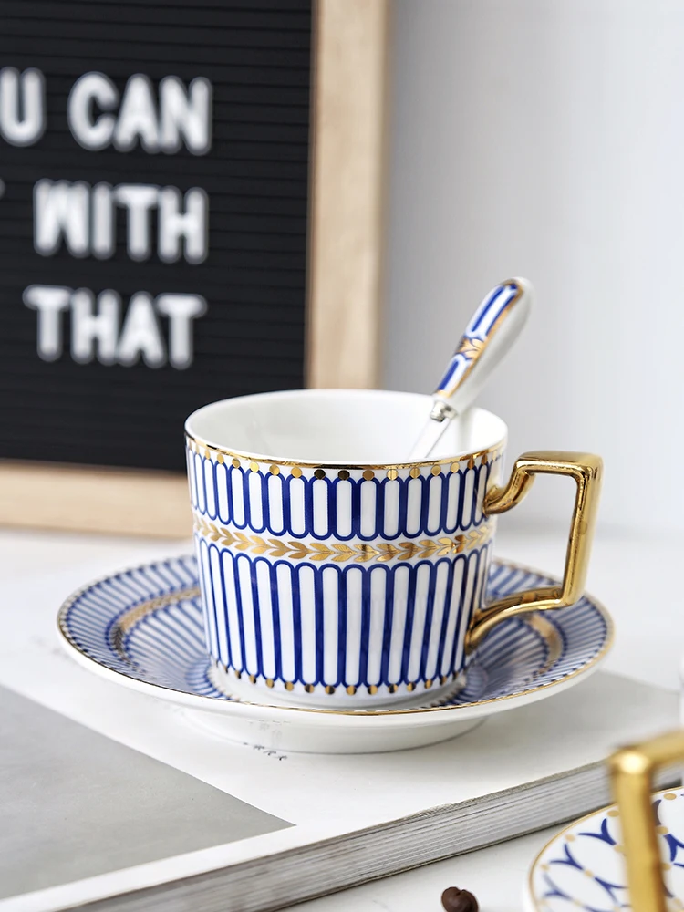 Высококачественные фарфоровые кофейные наборы с классическим рисунком в синюю полоску