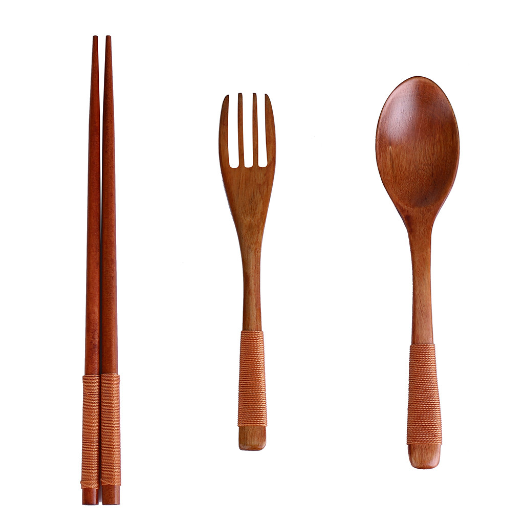 Смешанный Деревянные столовые приборы из 3 предметов-вишневая ложечка для перемешивания, пара палочек для еды Выберите и вилку, чтобы сделать заказ!