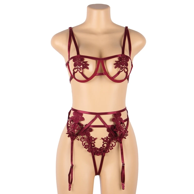 Комплект нижнего белья из 3 предметов с бюстгальтером и трусиками, прозрачная модель 5XL, комплект нижнего белья с вырезами, Эротическое нижнее белье для женщин, сексуальный кружевной комплект Lenceria RS81017