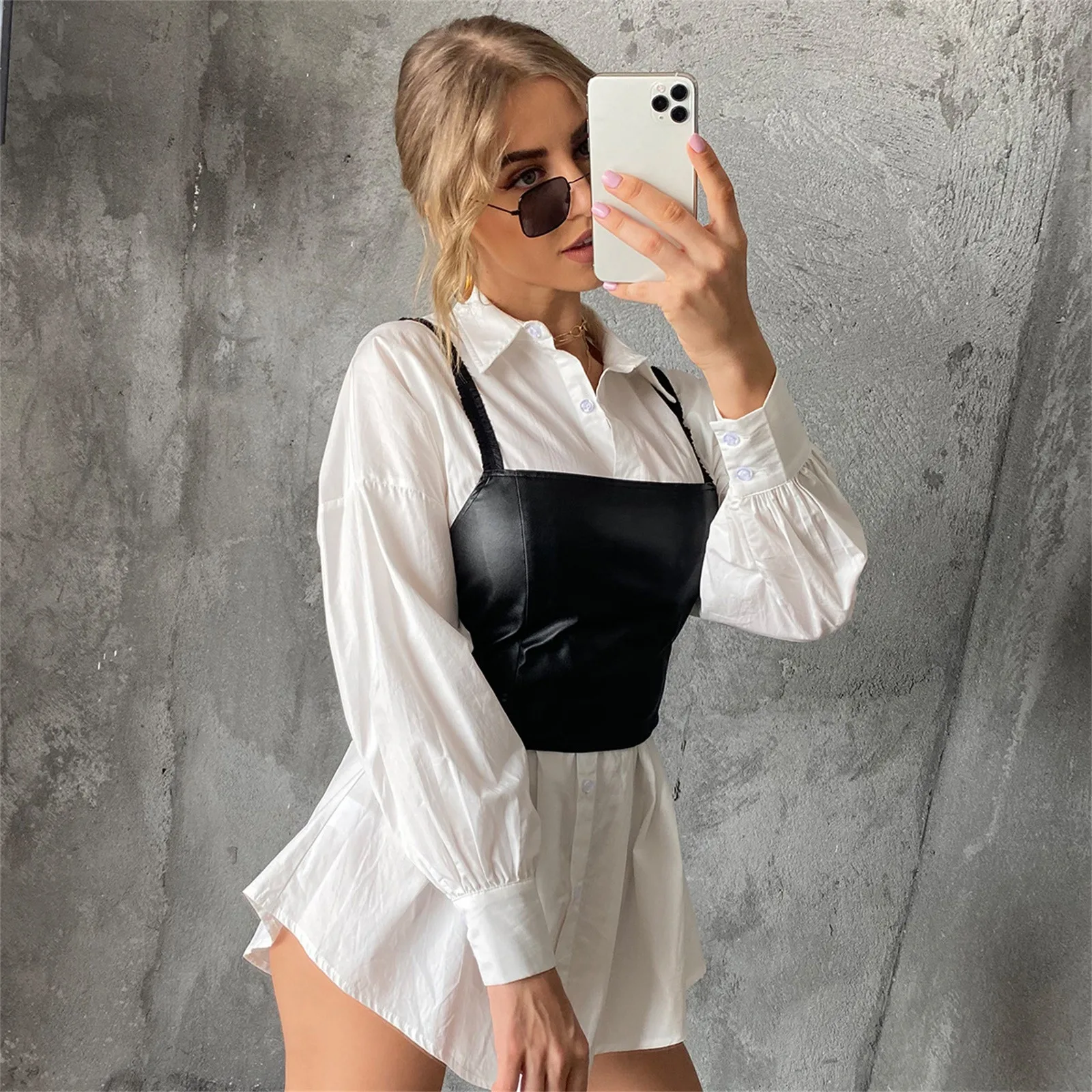 Женская модная сексуальная однотонная кожаная блузка, топы, футболки