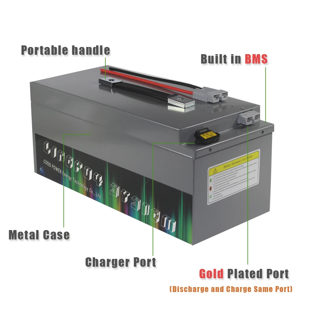Номинальное напряжение: 72 в Номинальная мощность: 100 Ач Сотовый Параметры: 3,2 V Сочетание батарей: 24S Напряжение разрядки: 52,8 в Напряжение отключения заряда: 87,6 в Номинальный ток разряда: 100A Максимальный непрерывный ток разряда: 120A Пиковый ток разряда: 240A Максимальный ток непрерывной зарядки: 0,5c Срок службы: 3200 циклов Сопротивление источника (МОм): на 35 меньше Температура зарядки: от 0 до 45 °C Температура разряда: от-20 до 65 °C Размеры батареи: 430x400x195 мм Вес батареи: 46 кг