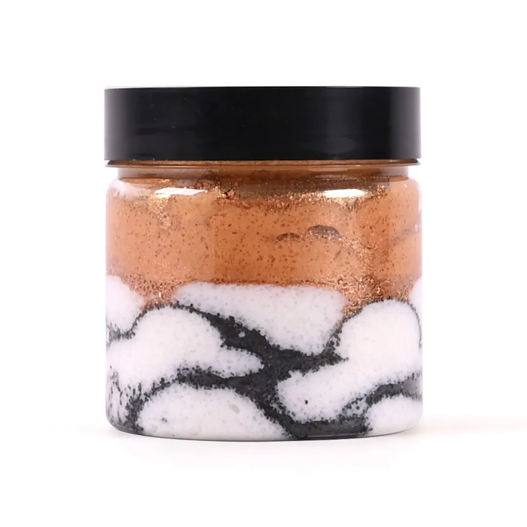 Мягкий нежный кремообразный скраб для тела. По консистенции напоминает густую сметану. Одна половина выглядит как белый мрамор с черными прожилками, вторая как золотое шампанское. Аромат: «Chance» от Chanel. (!) Этикетка содержит ненормативную лексику.