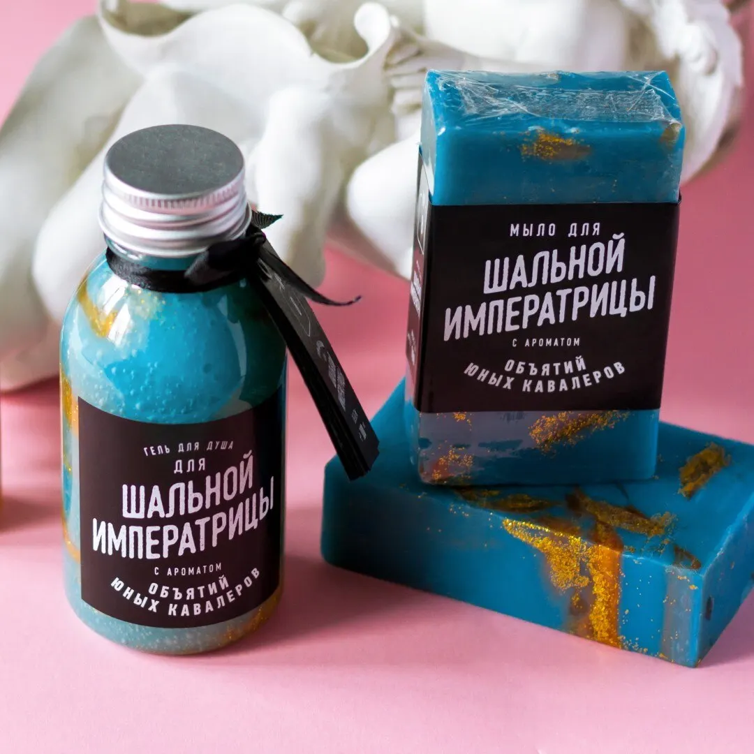 Дизайнерское мыло ручной работы для женщин. Основа мыла цвета Тиффани с желто-золотыми прожилками. Символизирует императорскую роскошь. Аромат: Nina Ricci