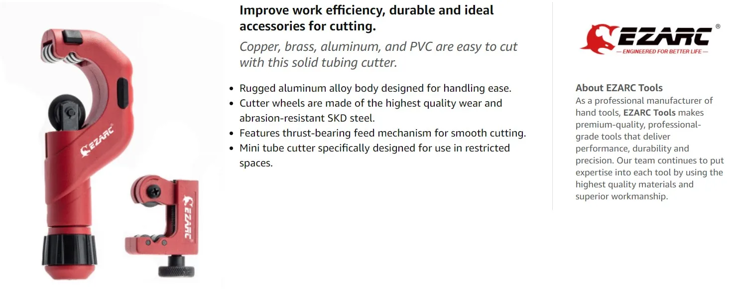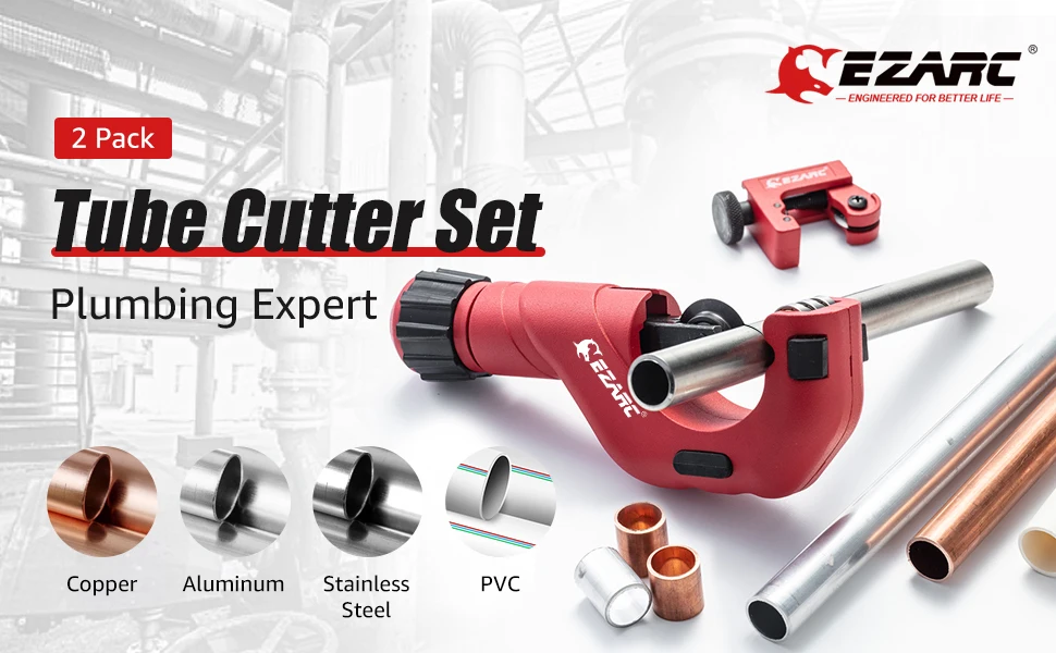 EZARC набор из 2 частей для резки труб с 3/16 до 2 дюймовым внешним диаметром сверхмощный резак труб и 1/8 до 7/8 дюймовый мини-резак труб для резки труб из алюминия, меди, ПВХ, тонкая трубка из нержавеющей стали