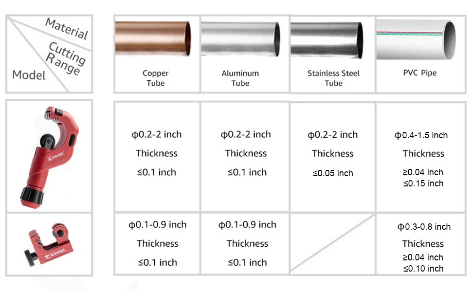 Область применения: резак для труб от 5 мм до 50 мм/мини-резак для труб от 3 мм до 22 мм