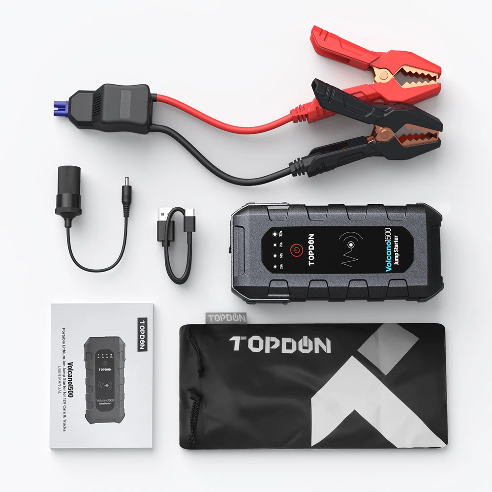 TOPDON Volcano1500 служит портативное пусковое устройство для автомобилей, лодок, мотоциклов, квадроциклов, газонокосилки, жилых автомобильных прицепах, тракторов, грузовых автомобилей, и т. д., с 25-раз boost возможность на одном заряде аккумулятора, И множественная защита от коротких замыканий, перегрузок, перезарядки и т. Д., для Оптимальный пользовательский опыт. Стартер скачка также может быть использован в различных реальных применениях для ночной кульминации, активного отдыха, жизни на мотоцикле и чрезвычайных ситуаций и т. д., чтобы быть интимным хранителем в вашем jouney