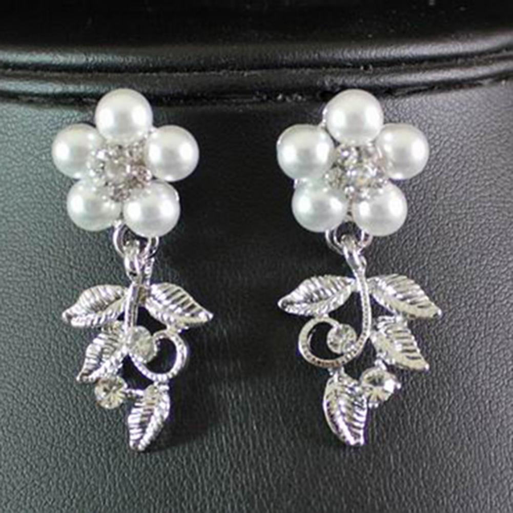 Женский цветочный искусственный жемчуг посеребренное ожерелье серьги свадебный комплект ювелирных изделий