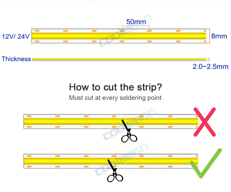 Ширина полосы COB: 8 мм