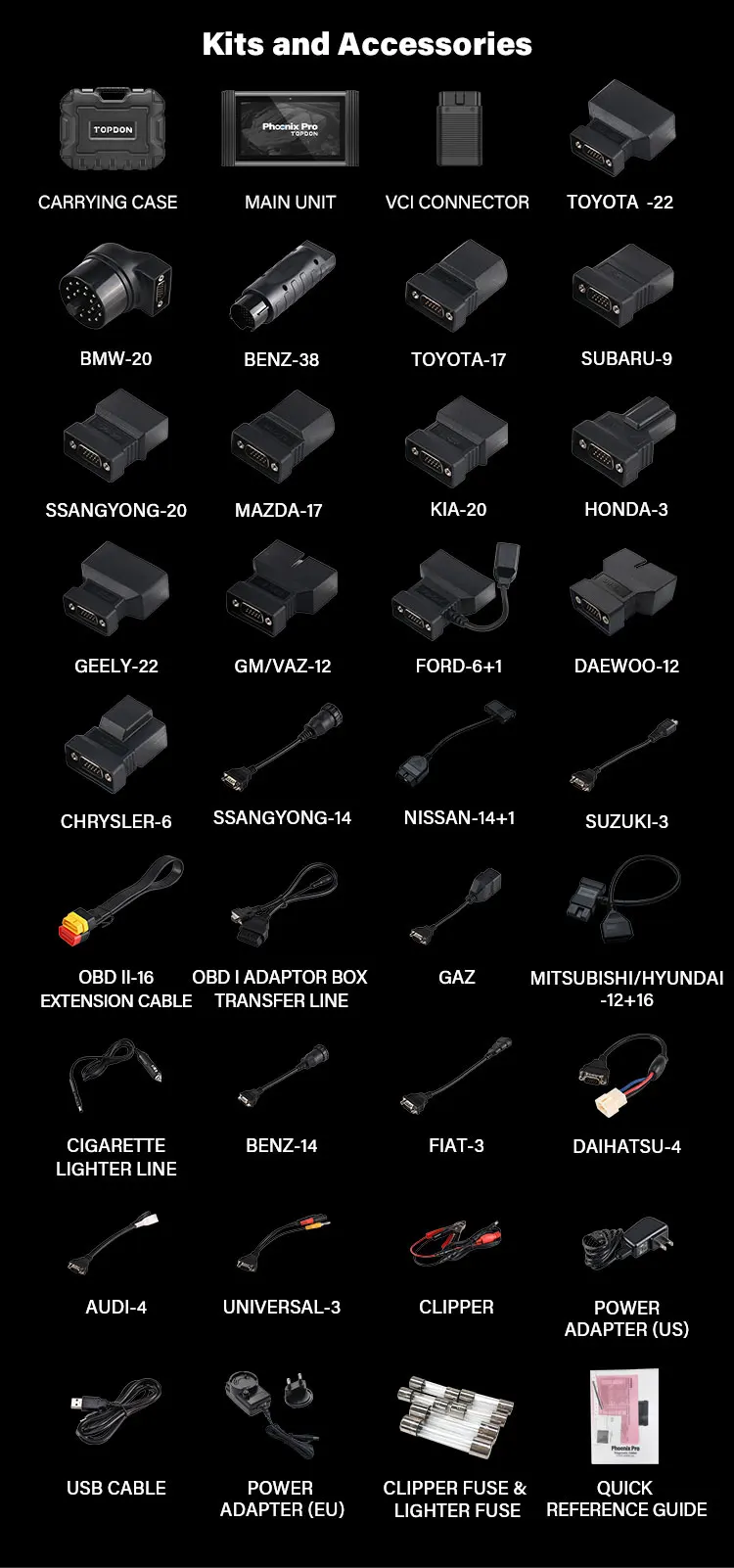 Все поддерживаемые марки автомобилей softwares включены, вам не нужно покупать программное обеспечение отдельно.