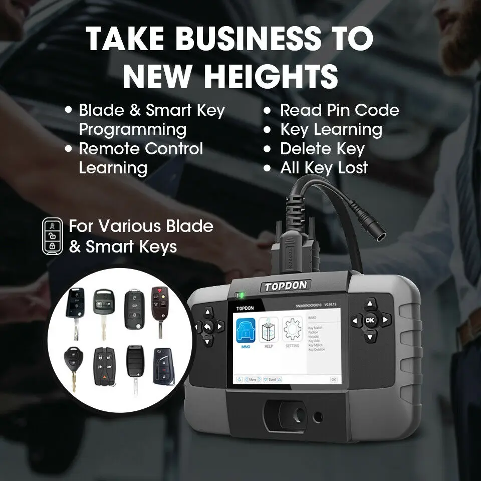 TOPDON T-Ninja1000 является инструментом программирования OBD key для автомобильной системы иммобилайзера. Множество мощных функций, включая создание ключей, считывание штифтов, обучение клавишам, дистанционное обучение, удаление ключей, все потерянные ключи и многое другое, все покрыты.