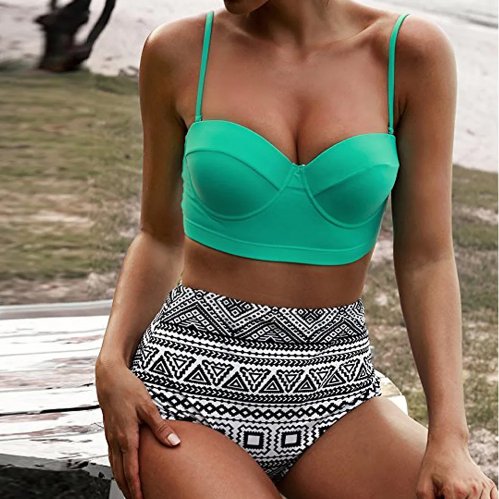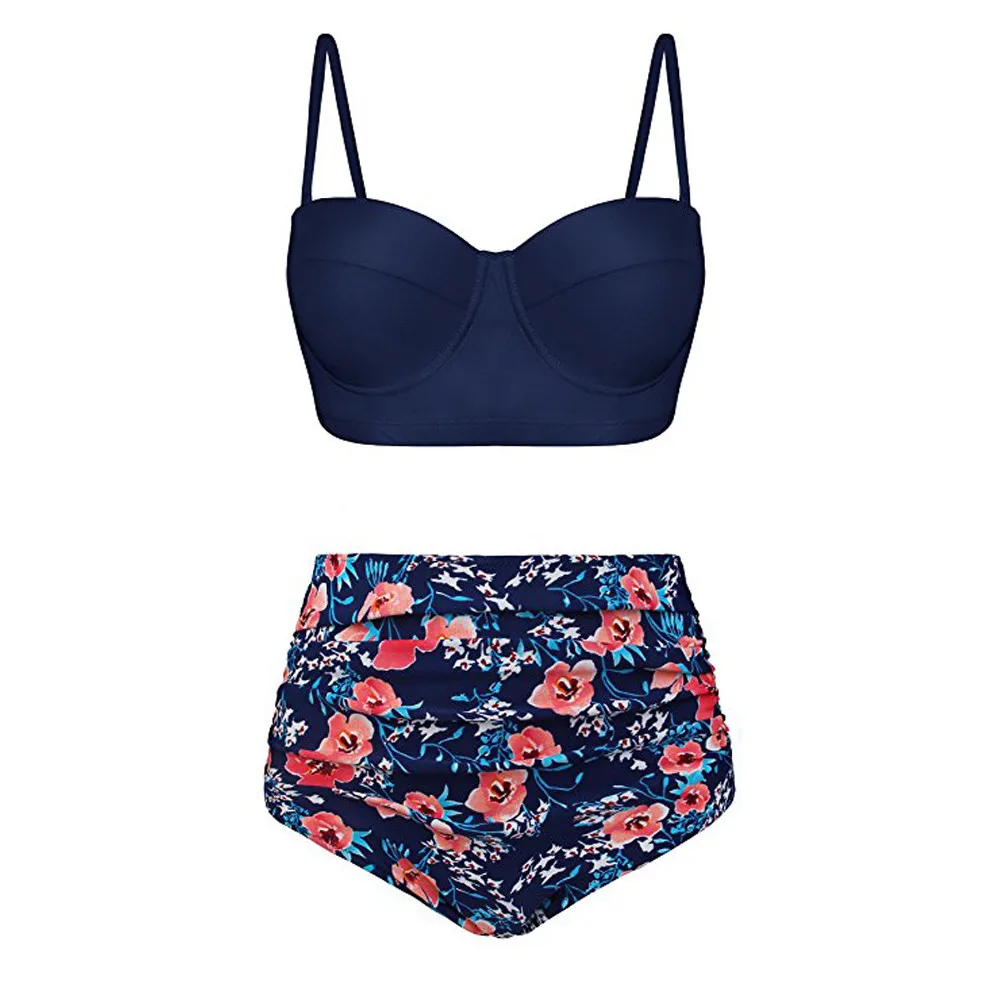 Women High Waist Bikinis Swimwear Swimuit Female Retro Beachewear Bikini Set