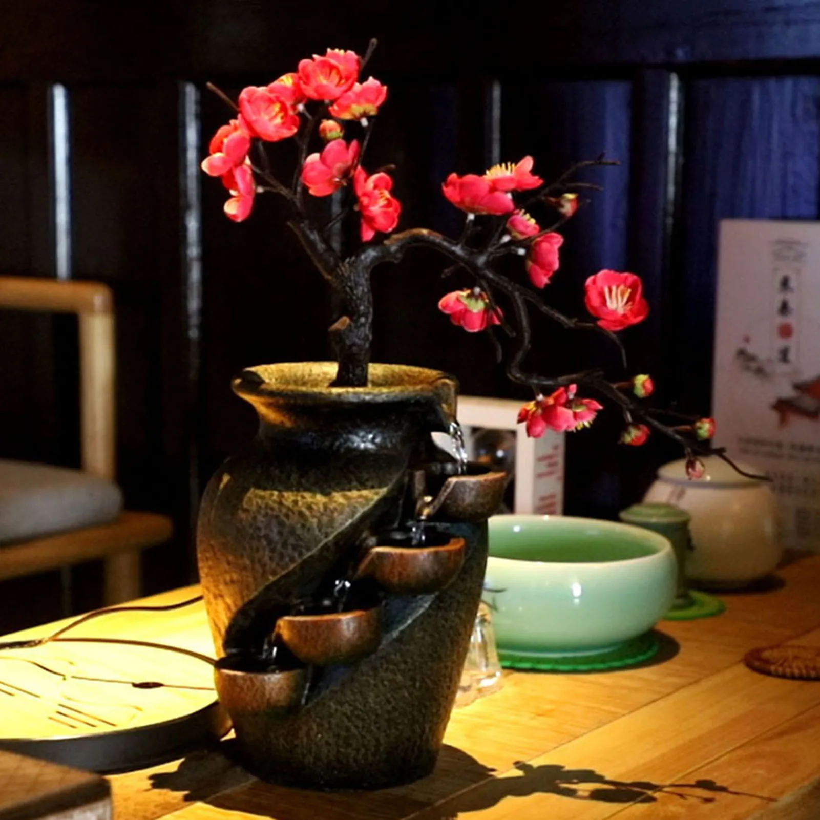 Water Vase Resin Crafts Company Office Tabletop Ornaments Desktop Flowing Water Waterfall Fountain Home Decoration Accessories