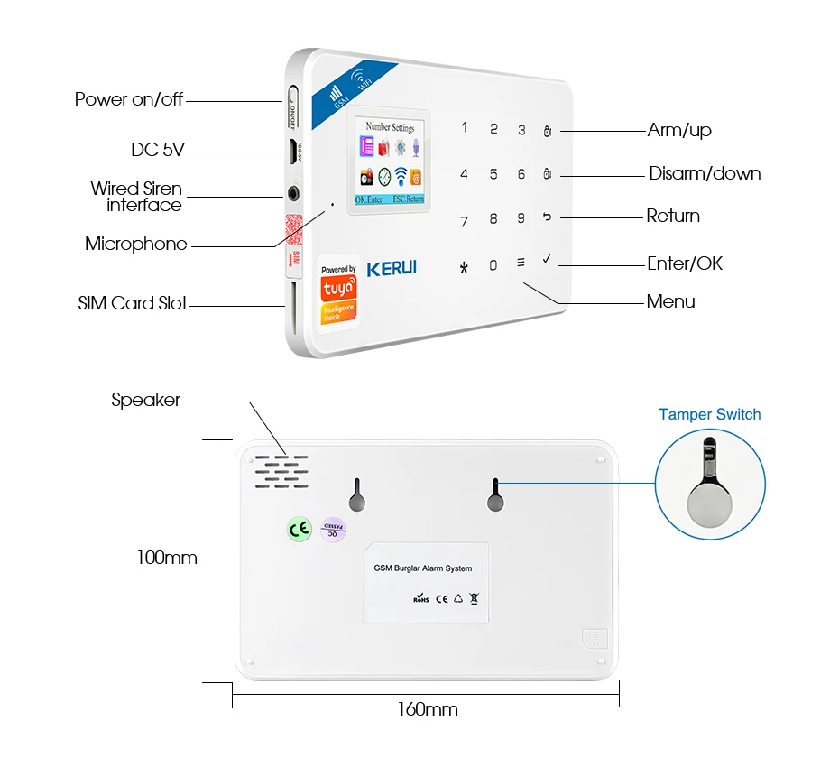 Arm и disarm KERUI сигнализация с вашим голосом и получать мобильные оповещения о двери/окна открытия или дыма