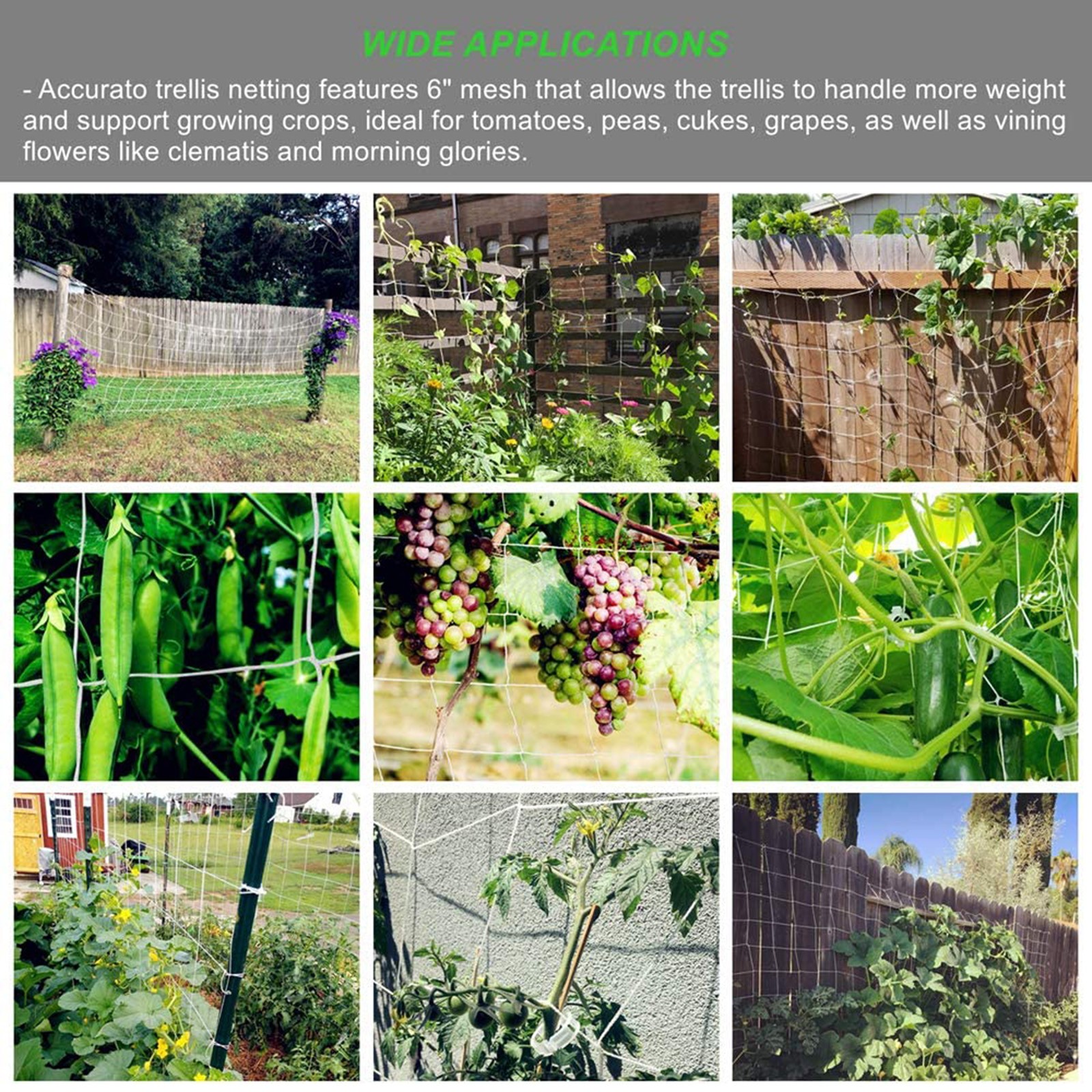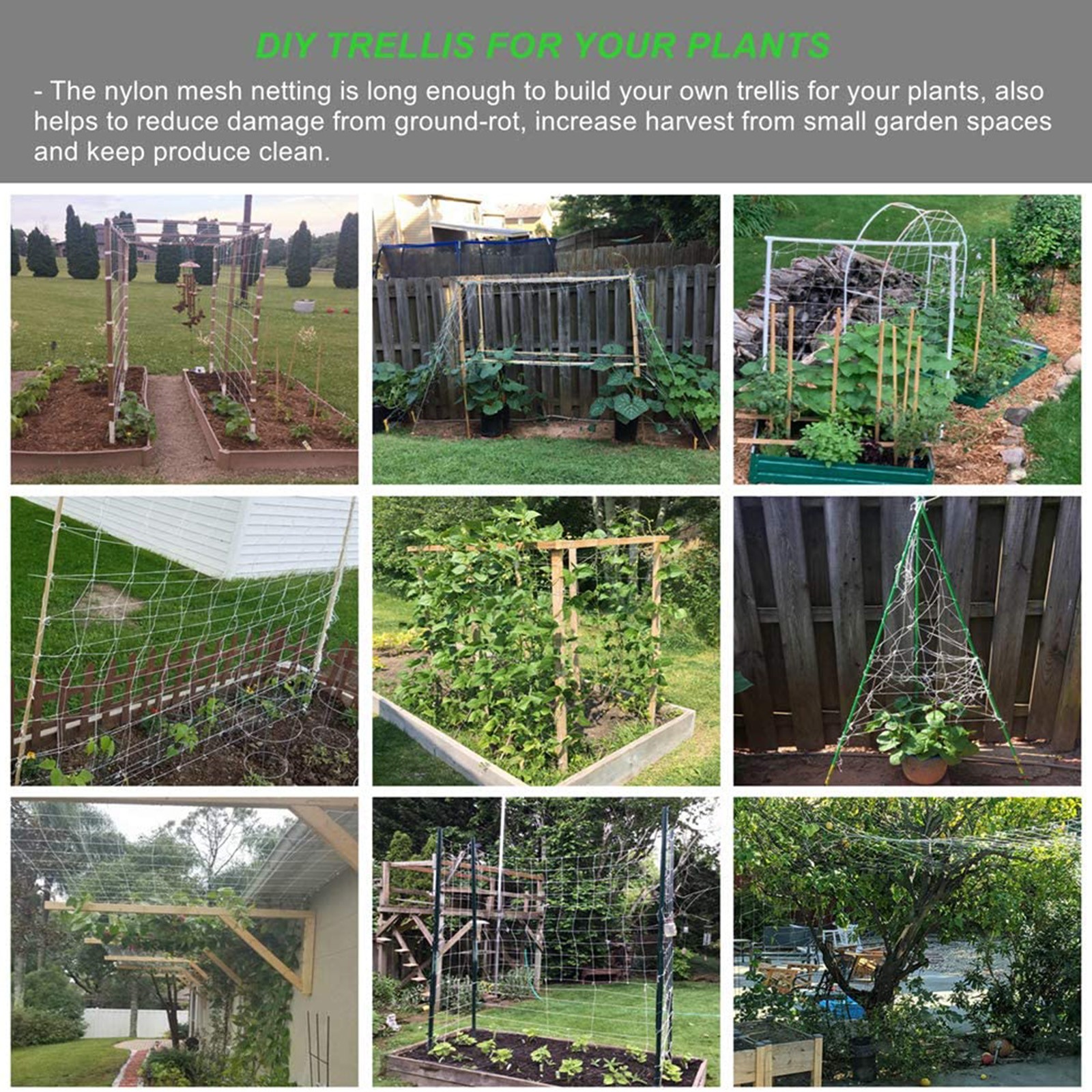 Овощи: Помидоры, бобы, горох, огурцы, сквоши, дыни, тыквы и другие виноградные Овощи. Фрукты: Виноград, малина, черника, канталупы и другие виноградные фрукты. Цветы: Клематис, альпинистские розы, сладкий горошек, утренние сладости, жимолости И другие vining цветы.Посылка Включая:
