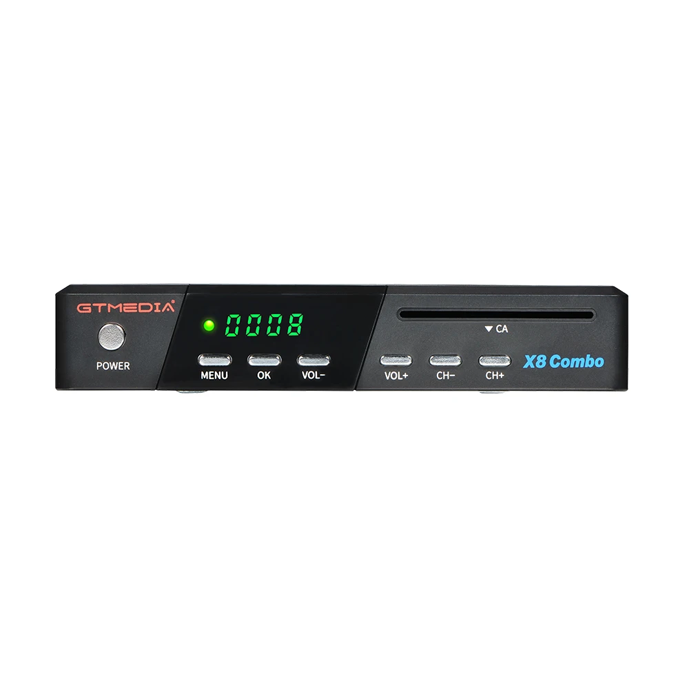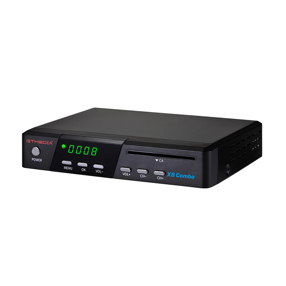 Топ 1 цифровой ТВ-приставка GTMEDIA <X8 combo> suppports DVB-S2X + DVB-T2 + DVB-C AVS +,VCM/ACM/multi-stream/T2MI, Multi-PLP.H.265 10 битБыстрая скорость видео декодер.
