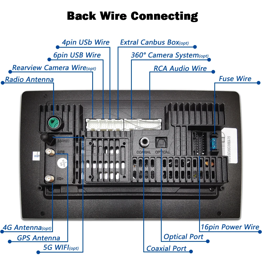12. Поддержка RCA AHD камера заднего вида, RCA видео вход, RCA DVR вход или USB DVR