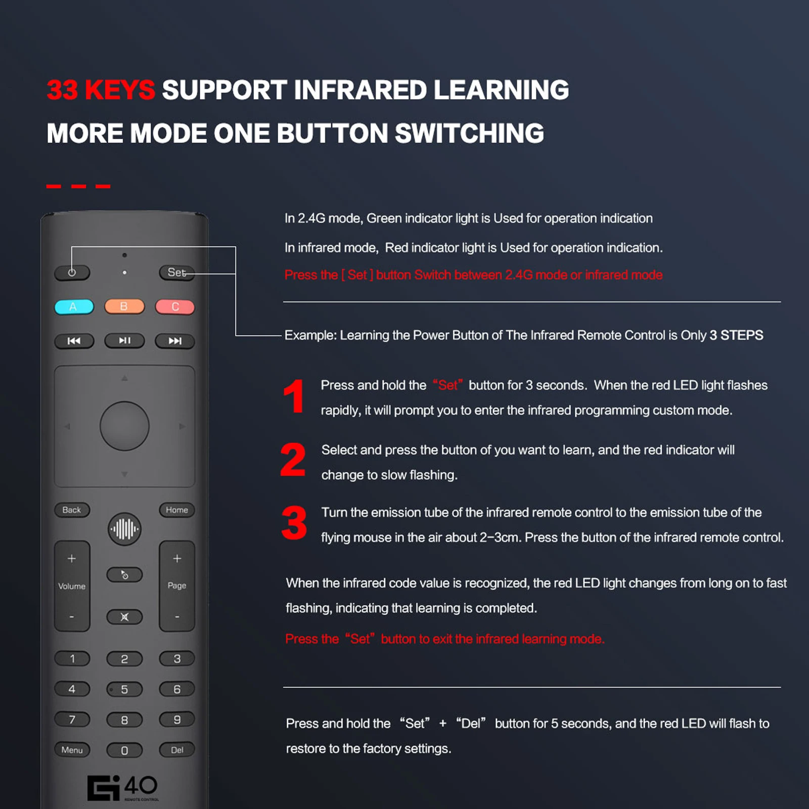 G40S интеллектуальное голосовое "Воздушная" мышь 6-осевой гироскоп ручной пульт дистанционного управления и ИК-обучения Голосовое управление 3 инфракрасный режимов для Smart TV Android TV BOX Mini PC