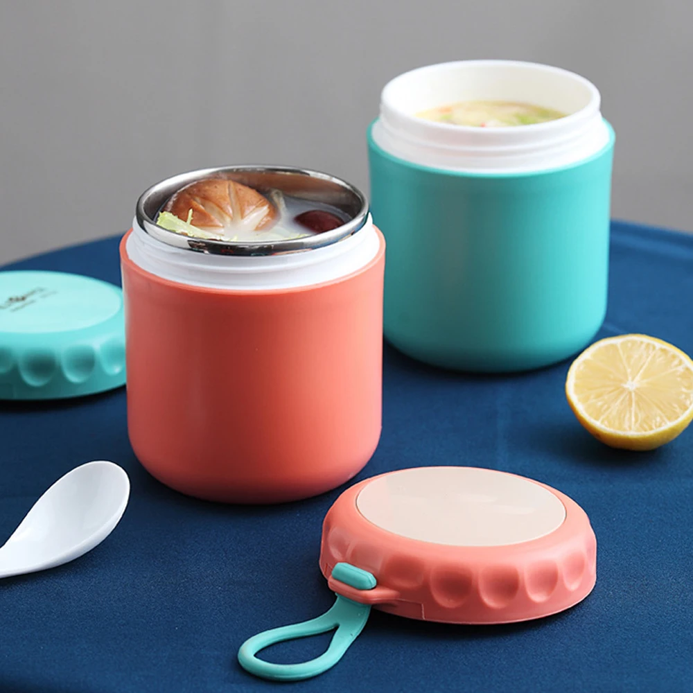 Наша банка для еды с термосом достаточно велика, чтобы поместиться во всю еду для детей, но достаточно мала, чтобы поместиться в детские коробки для ланча и сумки для обеда взрослых. Легко крутить крышкой с ручкой делает эту банку лучшим термосом для детей для горячей еды.