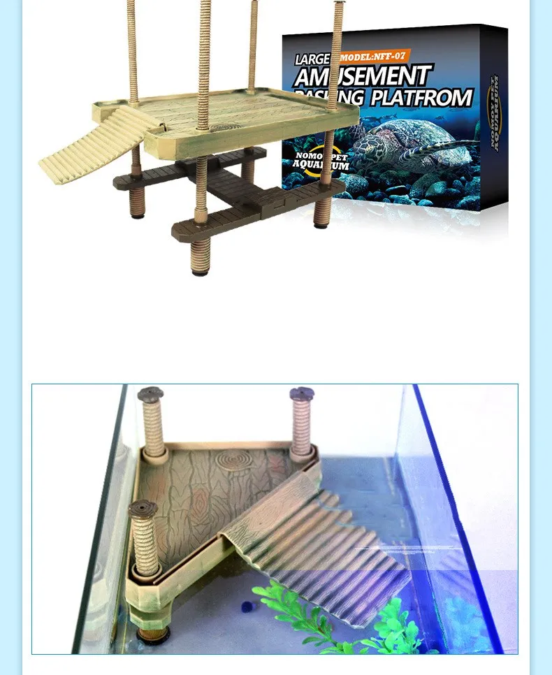 Легкая док-Рампа позволяет вашей черепахе легко взбираться на верхний уровень. Пирс имеет дополнительный держатель фильтра, где ваш фильтр может непосредственно прикрепить к платформе.