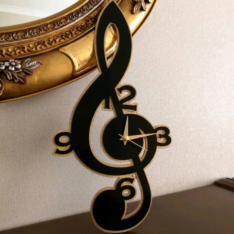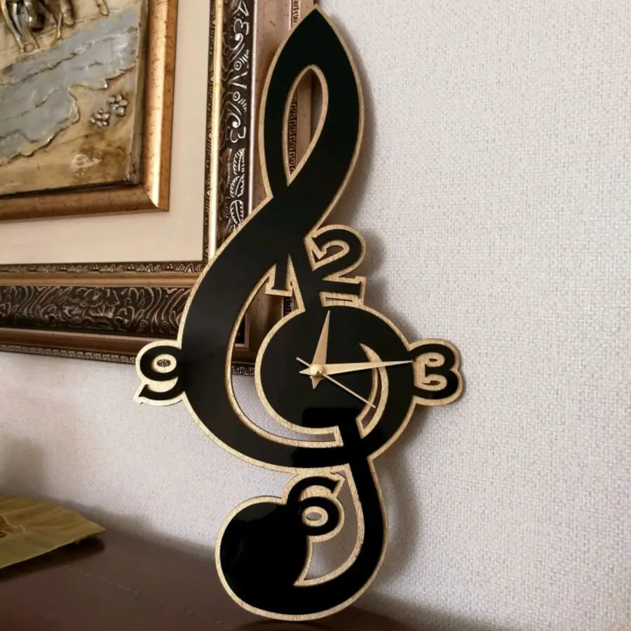 Любителям музыки это понравится. С этими часами, где вы будете отражать свою любовь к музыке на стене, вы будете иметь очень стильный вид и декоративные часы на стене вашего дома.