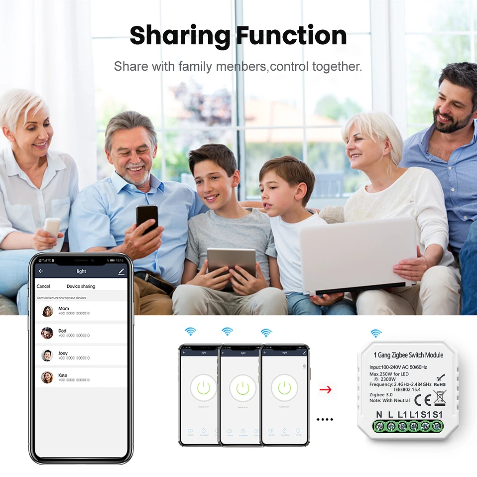 [Функция Family Share]-вы можете делиться переключателем со своей семьей с ограниченным правом, создавать умный дом вместе с вашим членом семьи.