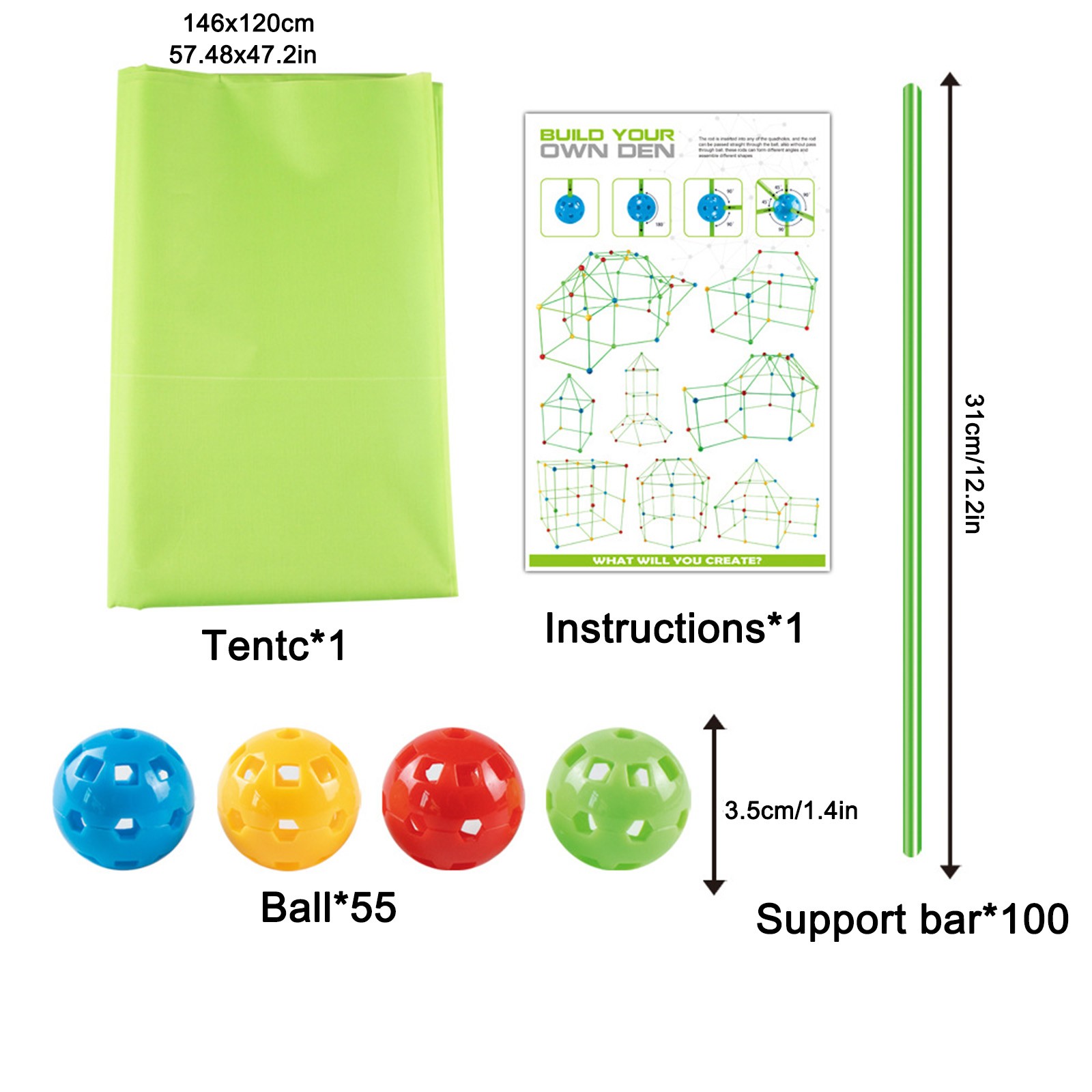 Описание продукта: Здание Форт-билдинг Комплект: включает 100Опора для палатки(12,2 "длинна), 55 синих фиксированных шариков (1,38" диаметр),1 ×Ткань для палатки.Наши поделки Наборы для палатки позволяют вашему ребенку строить форты всех форм и размеров(Ткань для палатки в комплекте)! Гибкие племенные забавы для мальчиков и девочек: комплекты ultimate Fort builder для детей рассчитаны на возраст от 5 лет. Постройте пещеру, палатку, ракету, домик, иглу, тоннель или Поиграйте в принцессу и просто добавьте простыню. Пусть ваши дети часами создают свой фантазийный мир. Поощряет творческие способности и стимулирует воображение и развивает навыки критического мышления: ваши дети могут построить собственный форт и спроектировать дом, замок, ракетный корабль и многое другое! Наш Форт-комплект побуждает детей развивать воображение и навыки решения проблем! Прочный, портативный, простой в сборке: Изготовлен из прочного и высококачественного пластика. Пластиковые штифты можно легко и безопасно вставить в шаровые разъемы, которые являются многомерными и с несколькими отверстиями, направление штифтов можно менять. Вам не нужно беспокоиться о разрушении конструкций. Отличное развлечение для детей. Рекомендуется для возраста 5 лет и старше. Может потребоваться наблюдение/Поддержка взрослых.Изделие включает в себя крышку форт.Содержание продукта: