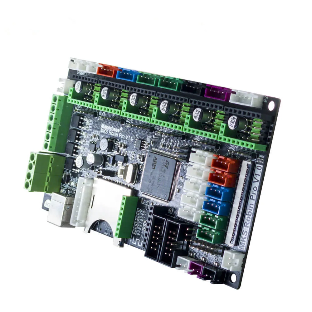 MKS Robin Pro-это многоосевая 3d-плата управления, оснащенная основным чипом STM32F103, частотой 72 МГц. Материнская плата поддерживает 6-axis мотор-выход и может поддерживать Три головки печати. Оборудование поддерживает dual Z, несколько экранных решений, совместимо с LCD12864, MINI12864, а также поддерживает сенсорные экраны robin TFT разных размеров.