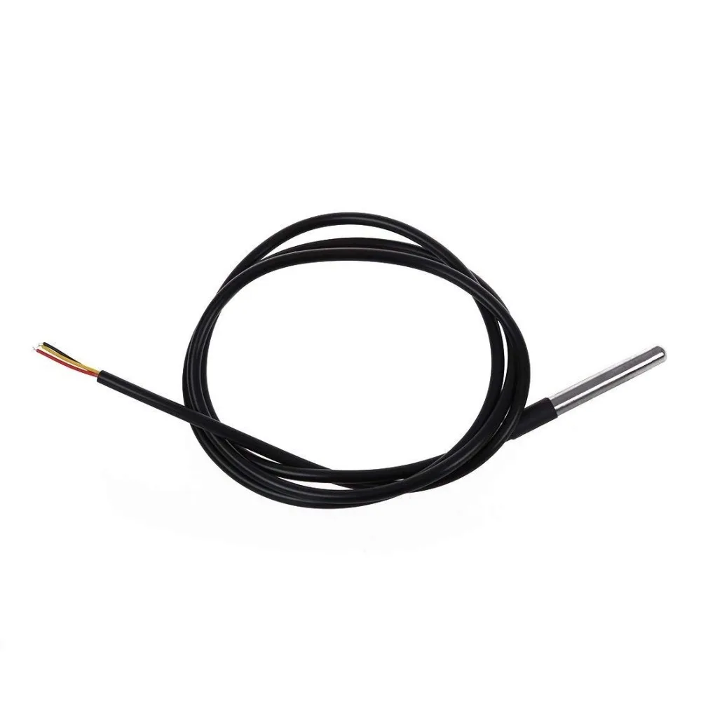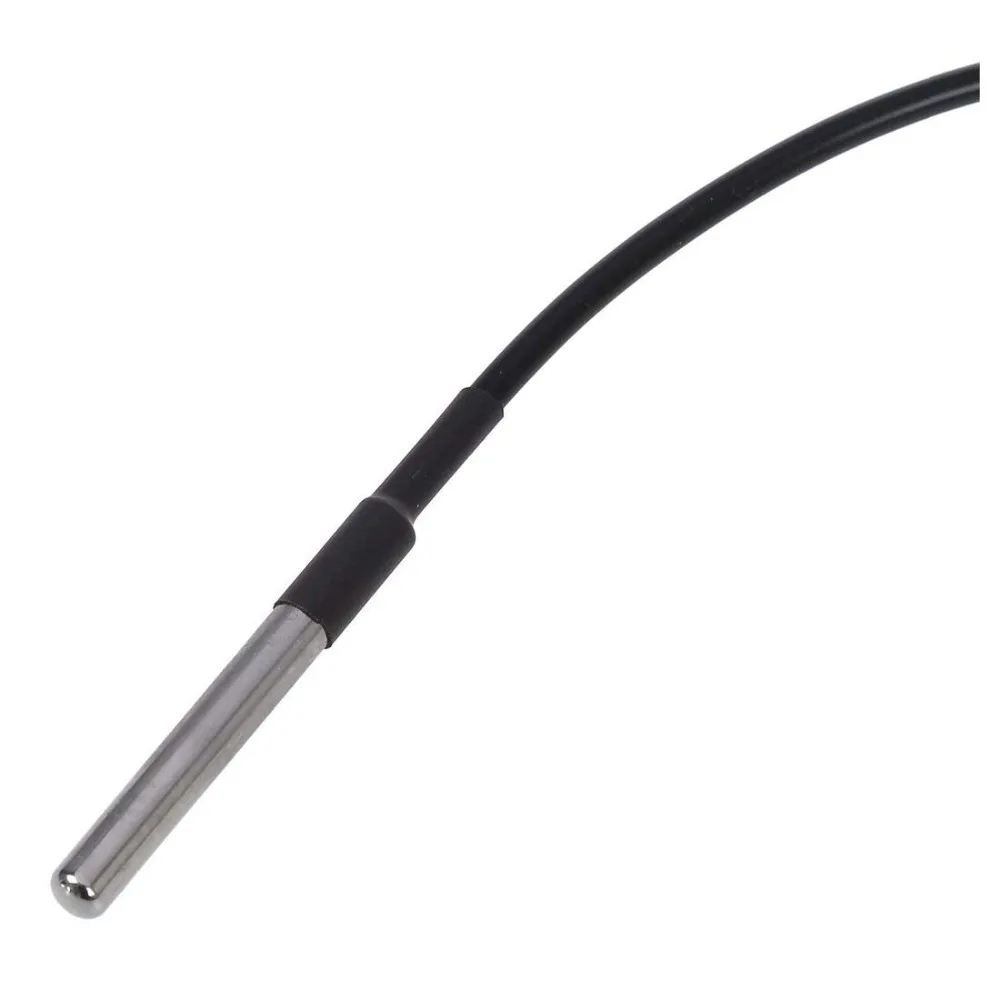 Характеристика: Длина кабеля: 100 см/200 см/300 см Размер корпуса из нержавеющей стали: 6*50 мм Мощность поставить диапазон: 3,0 V до 5,5 V Диапазон рабочих температур: от-55 °C до + 125 °C (от-67 °F до + 257 °F) Диапазон температур хранения: от-55 °C до + 125 °C (от-67 °F до + 257 °F) Точность в диапазоне от-10 °C до + 85 °C: ± 0,5 °C. Выходные провода: желтый (VCC), красный (DATA), черный (GND) Посылка включает: 1 шт. DS18b20 датчик температуры или DS18b20 стальная трубка